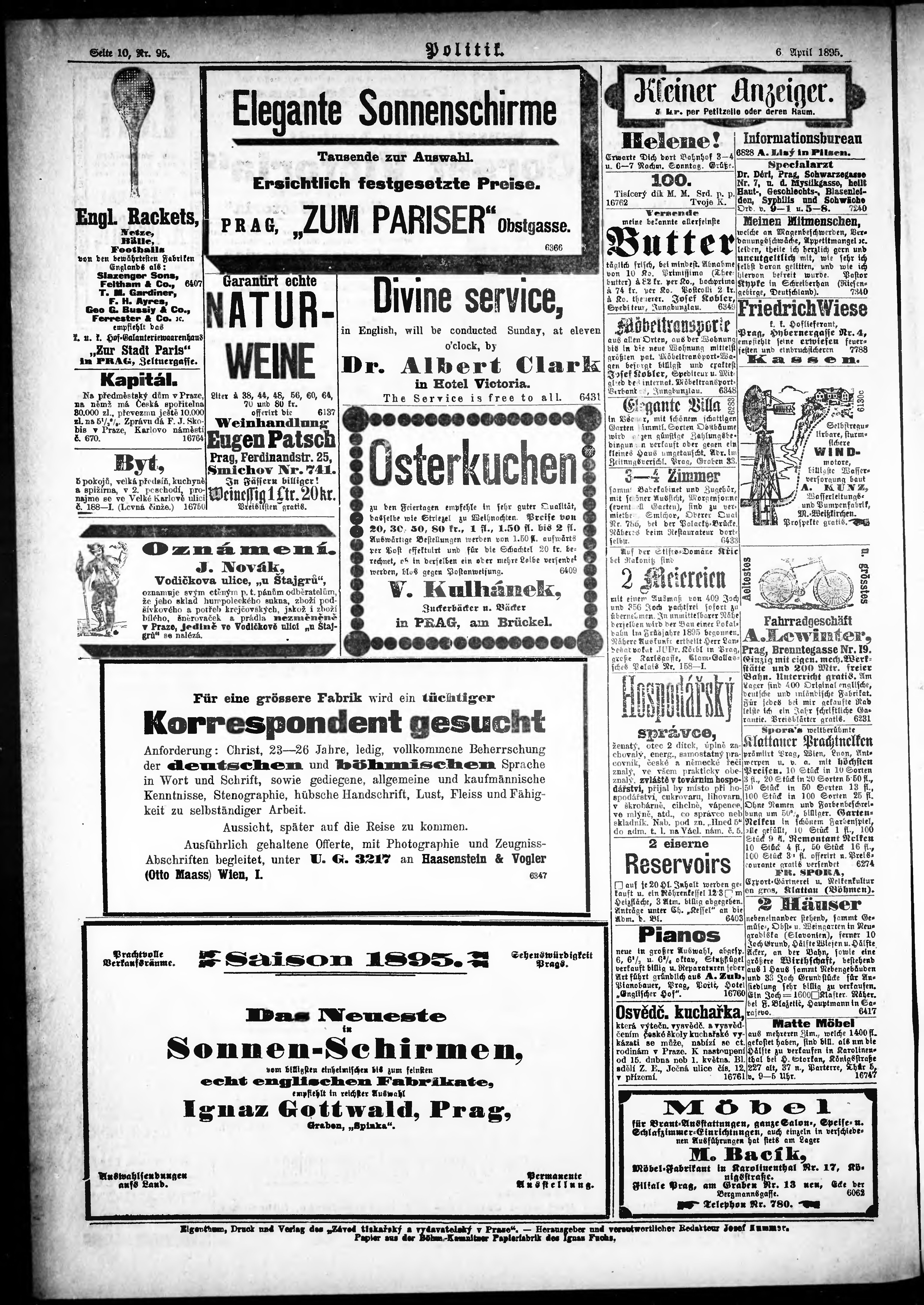 * Datum vydání výtisku: 6.4.1895 Číslo výtisku: 95 Poznámky k výtisku: ranní vydání;