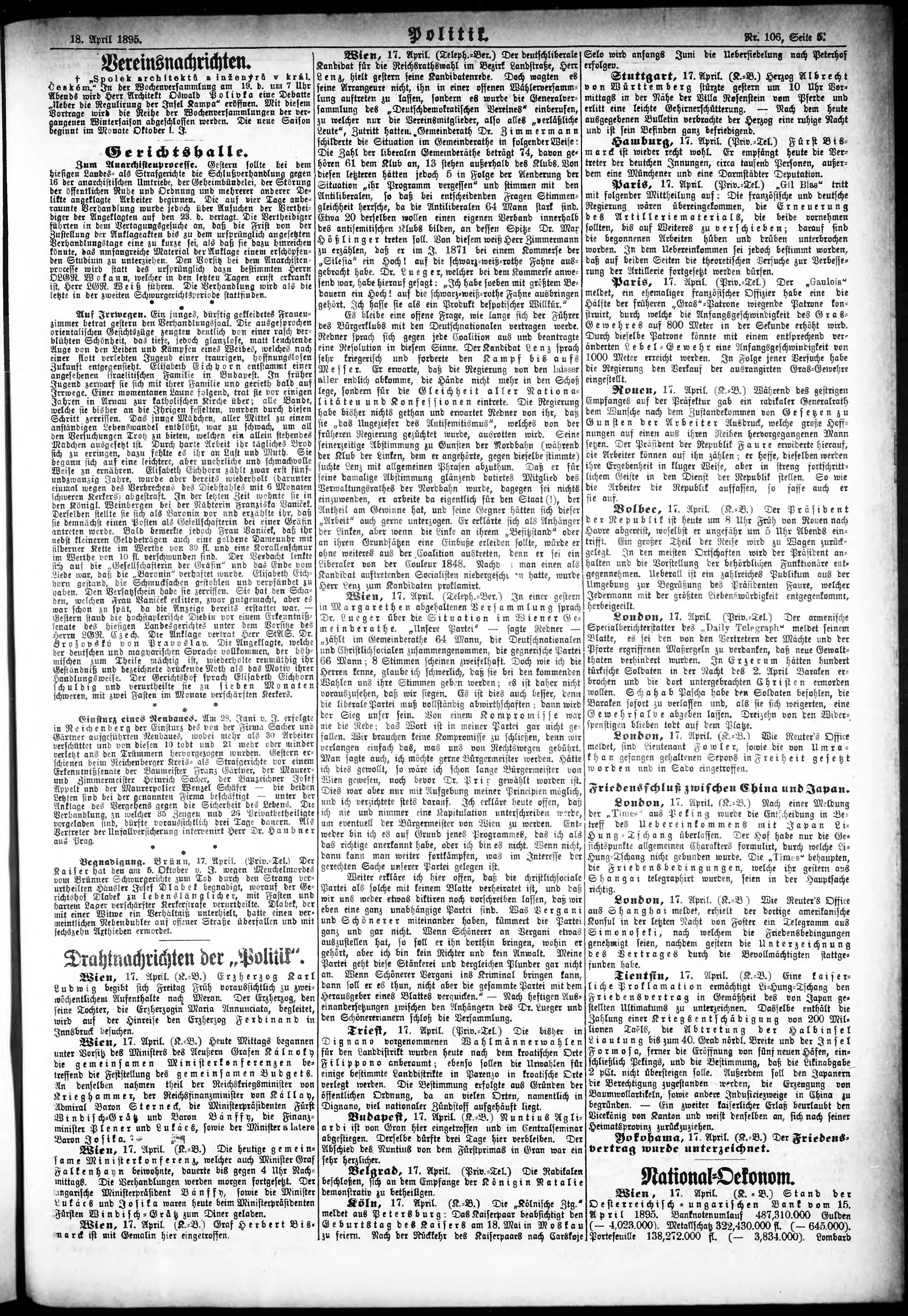 * Datum vydání výtisku: 18.4.1895 Číslo výtisku: 106 Poznámky k výtisku: ranní vydání;