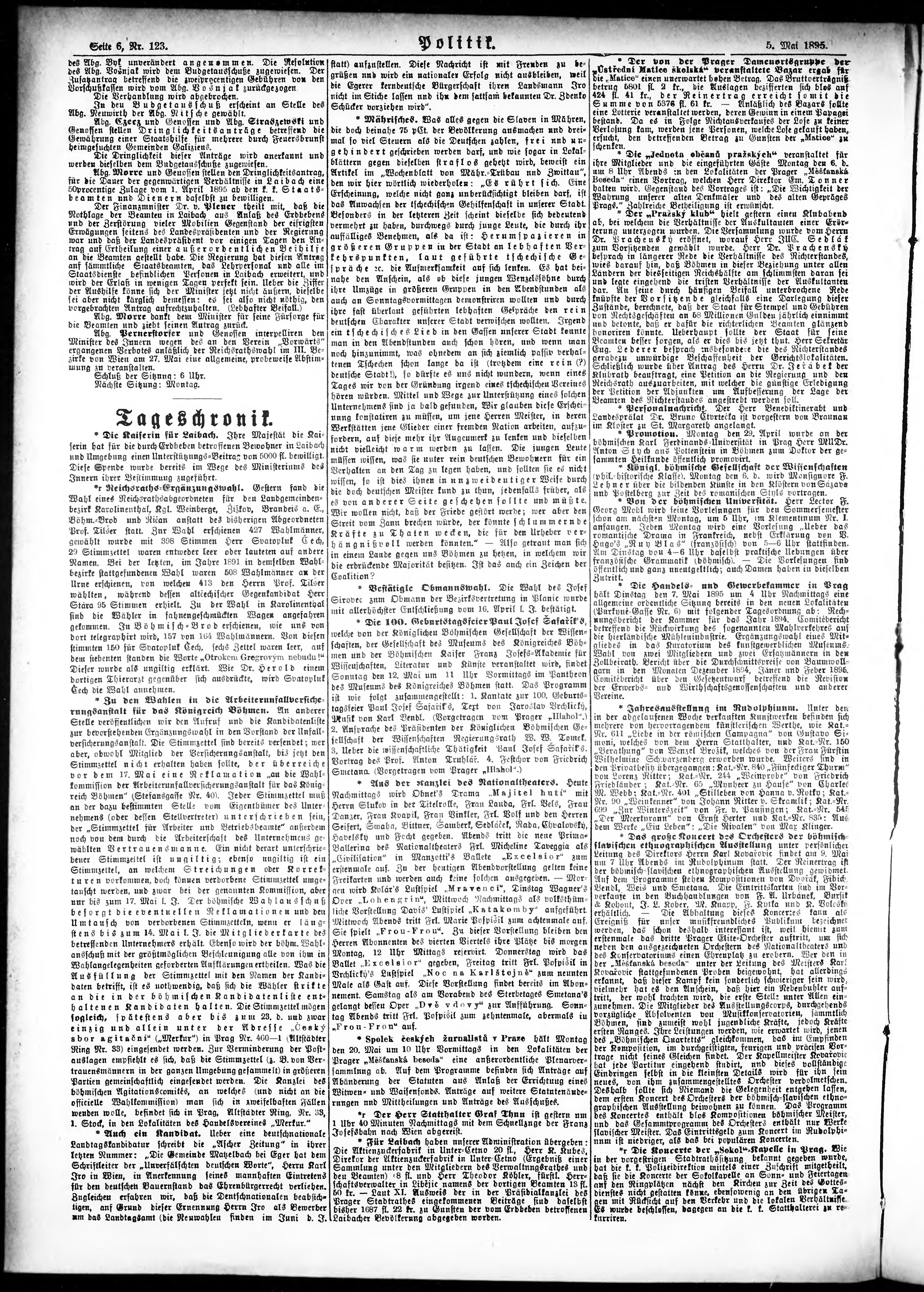 * Datum vydání výtisku: 5.5.1895 Číslo výtisku: 123 Poznámky k výtisku: ranní vydání;