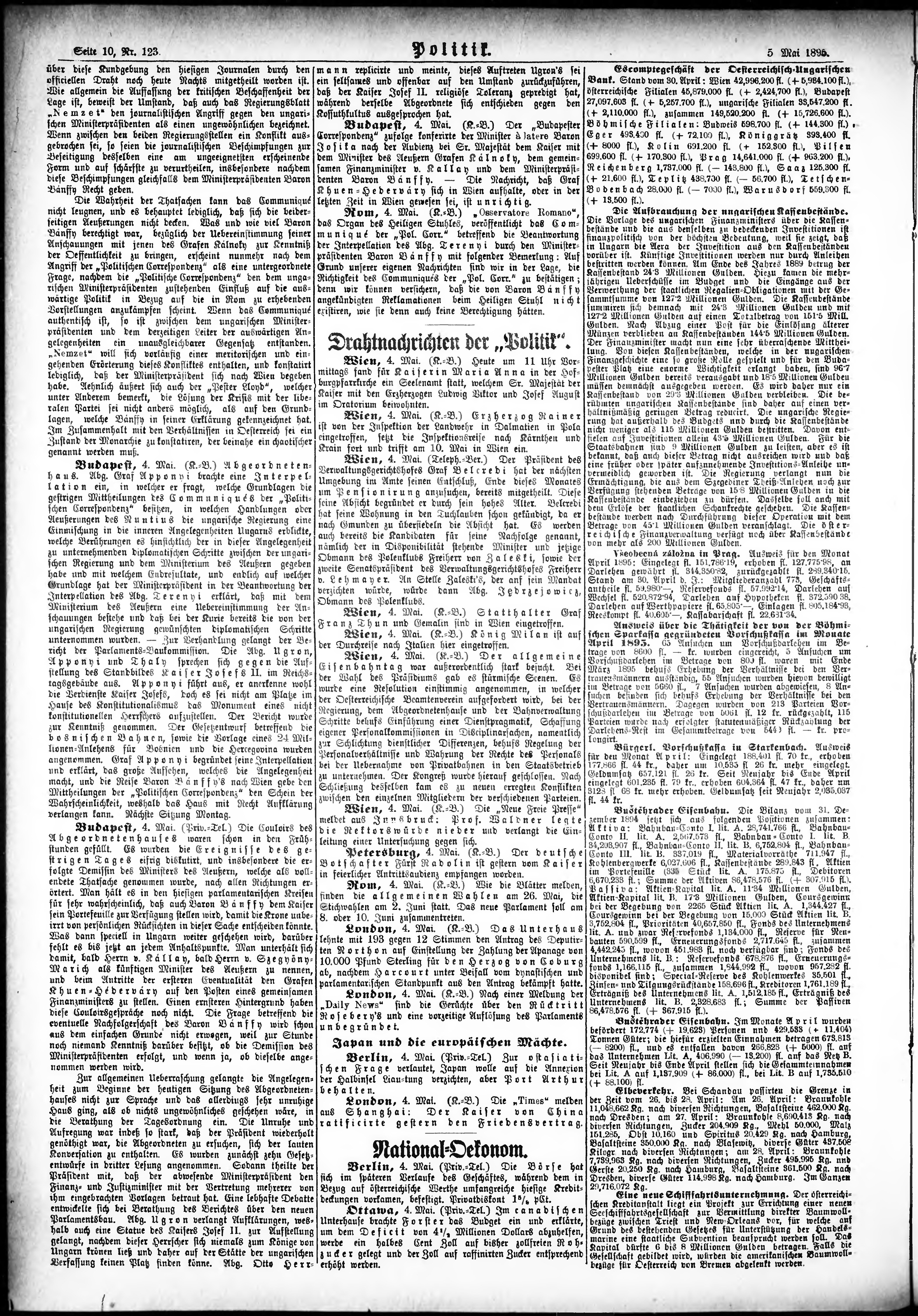 * Datum vydání výtisku: 5.5.1895 Číslo výtisku: 123 Poznámky k výtisku: ranní vydání;