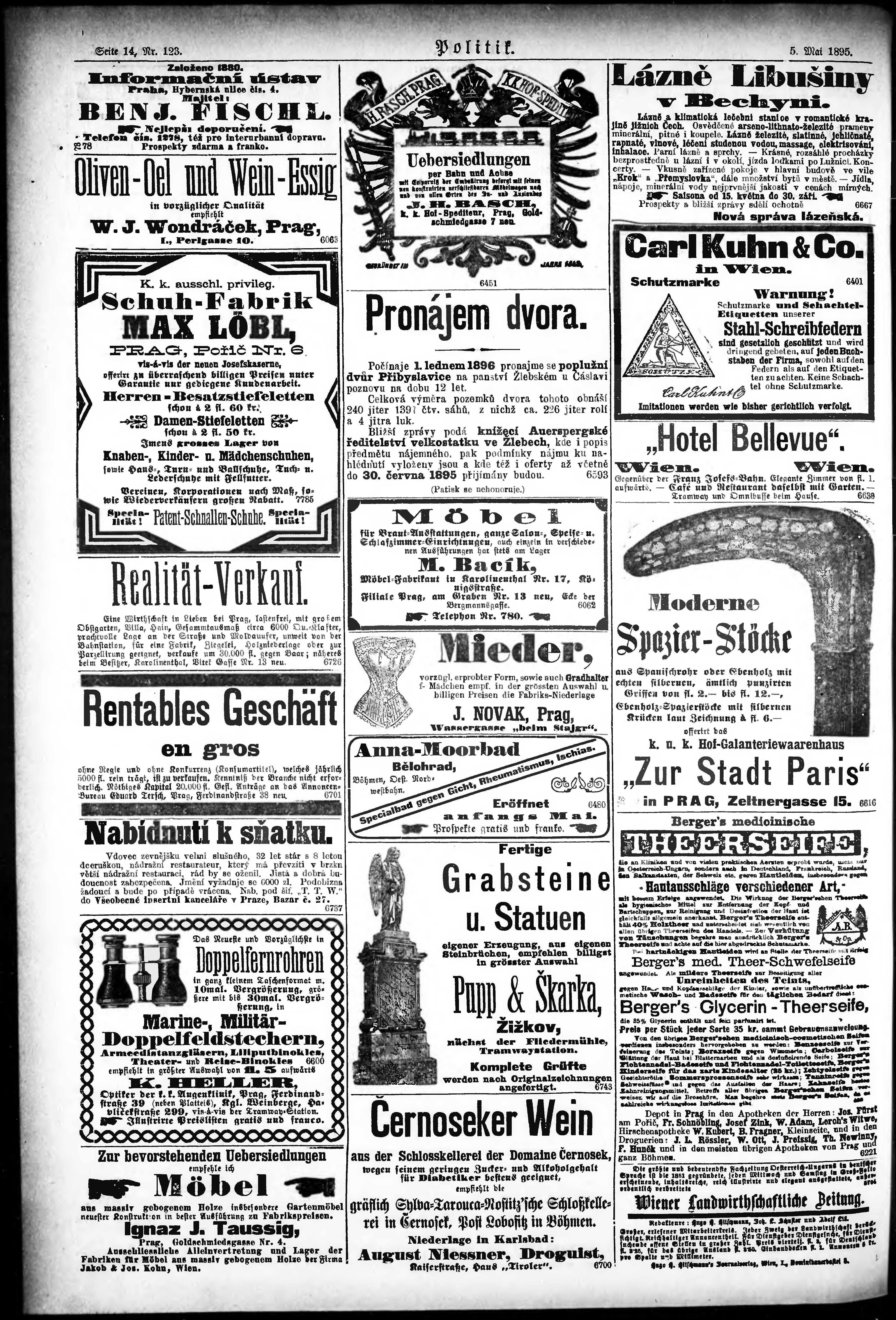 * Datum vydání výtisku: 5.5.1895 Číslo výtisku: 123 Poznámky k výtisku: ranní vydání;