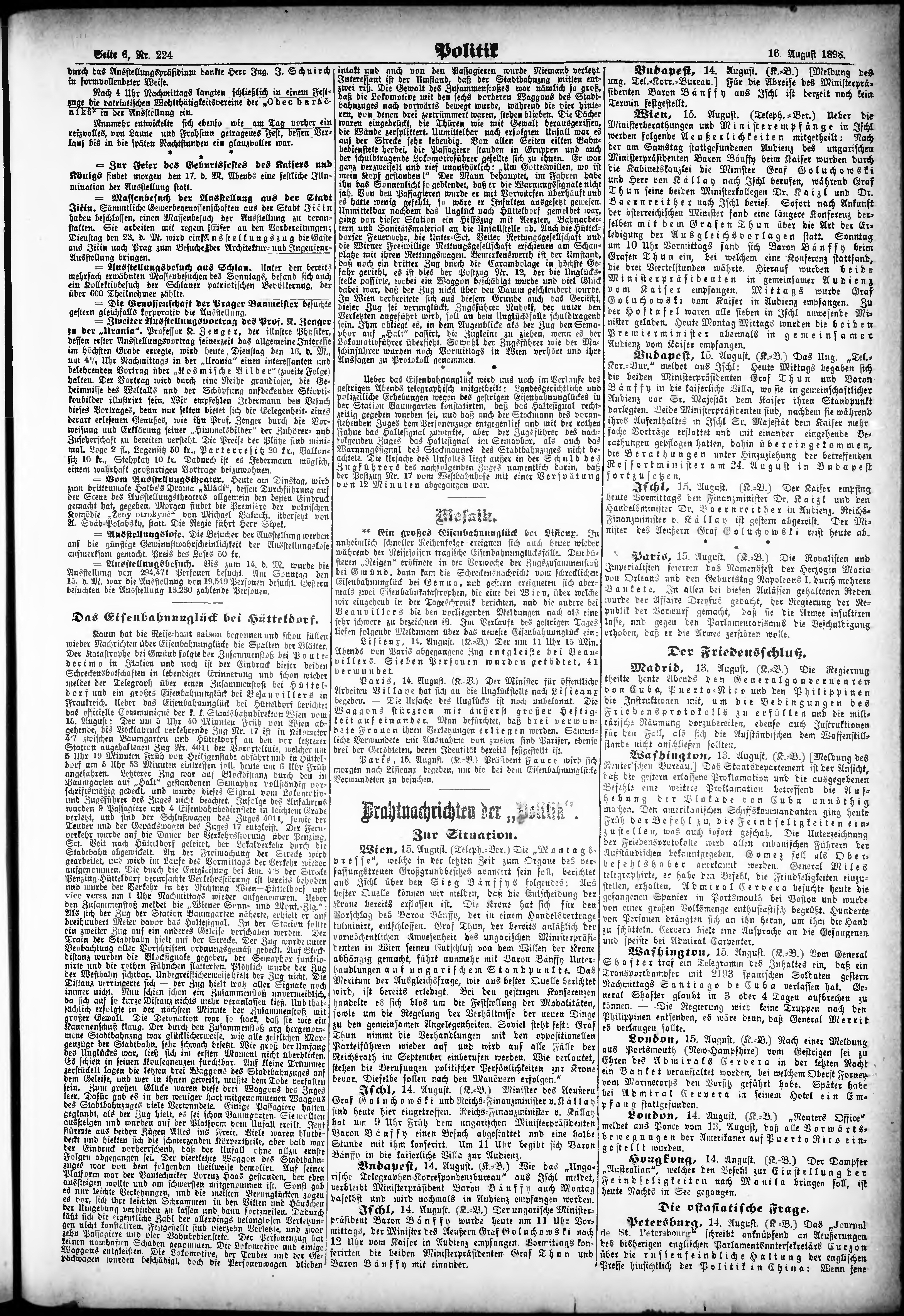 * Datum vydání výtisku: 16.8.1898 Číslo výtisku: 224 Poznámky k výtisku: ranní vydání;