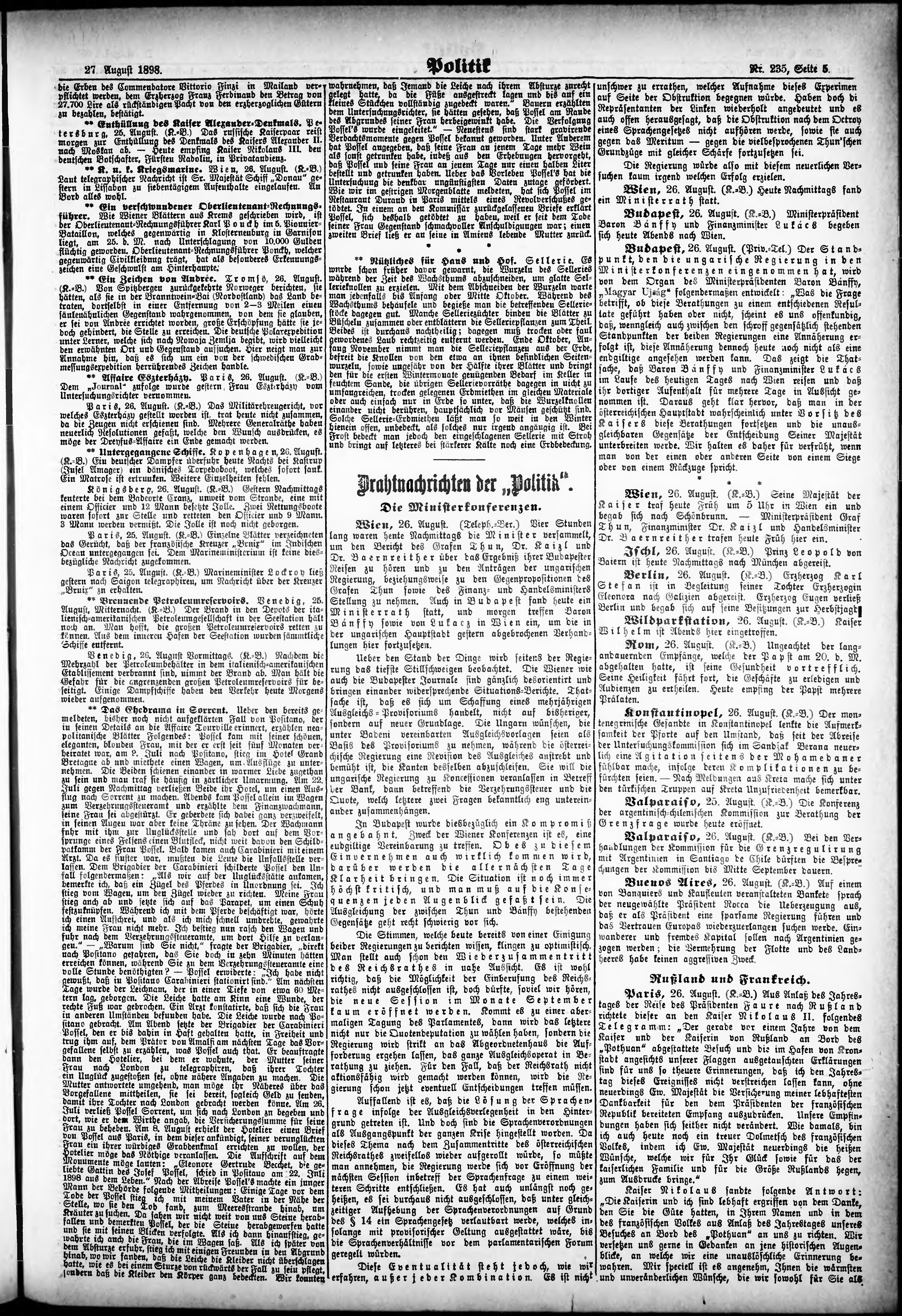 * Datum vydání výtisku: 27.8.1898 Číslo výtisku: 235 Poznámky k výtisku: ranní vydání;