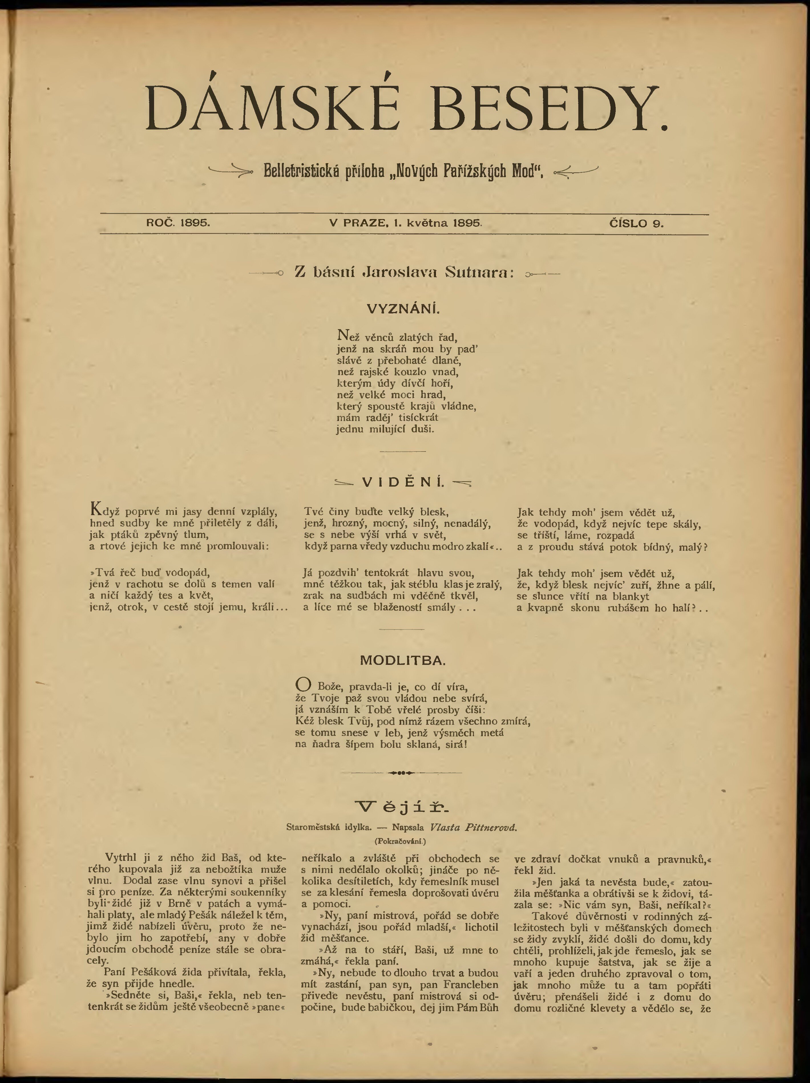 * Datum vydání výtisku: 1.5.1895 Číslo výtisku: 9 Typ výtisku: příloha Poznámky k výtisku: belletristická příloha;