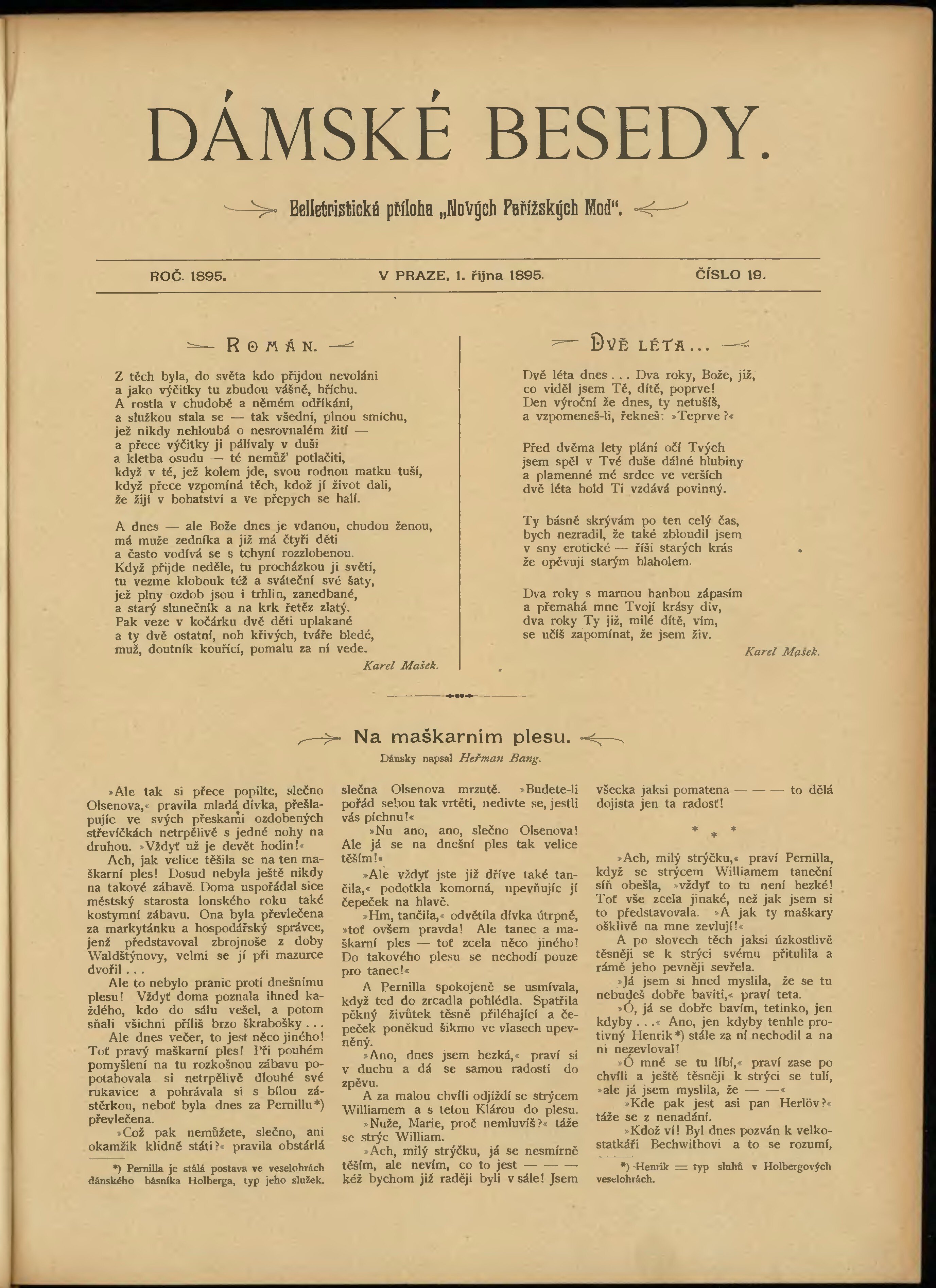 * Datum vydání výtisku: 1.10.1895 Číslo výtisku: 19 Typ výtisku: příloha Poznámky k výtisku: belletristická příloha;