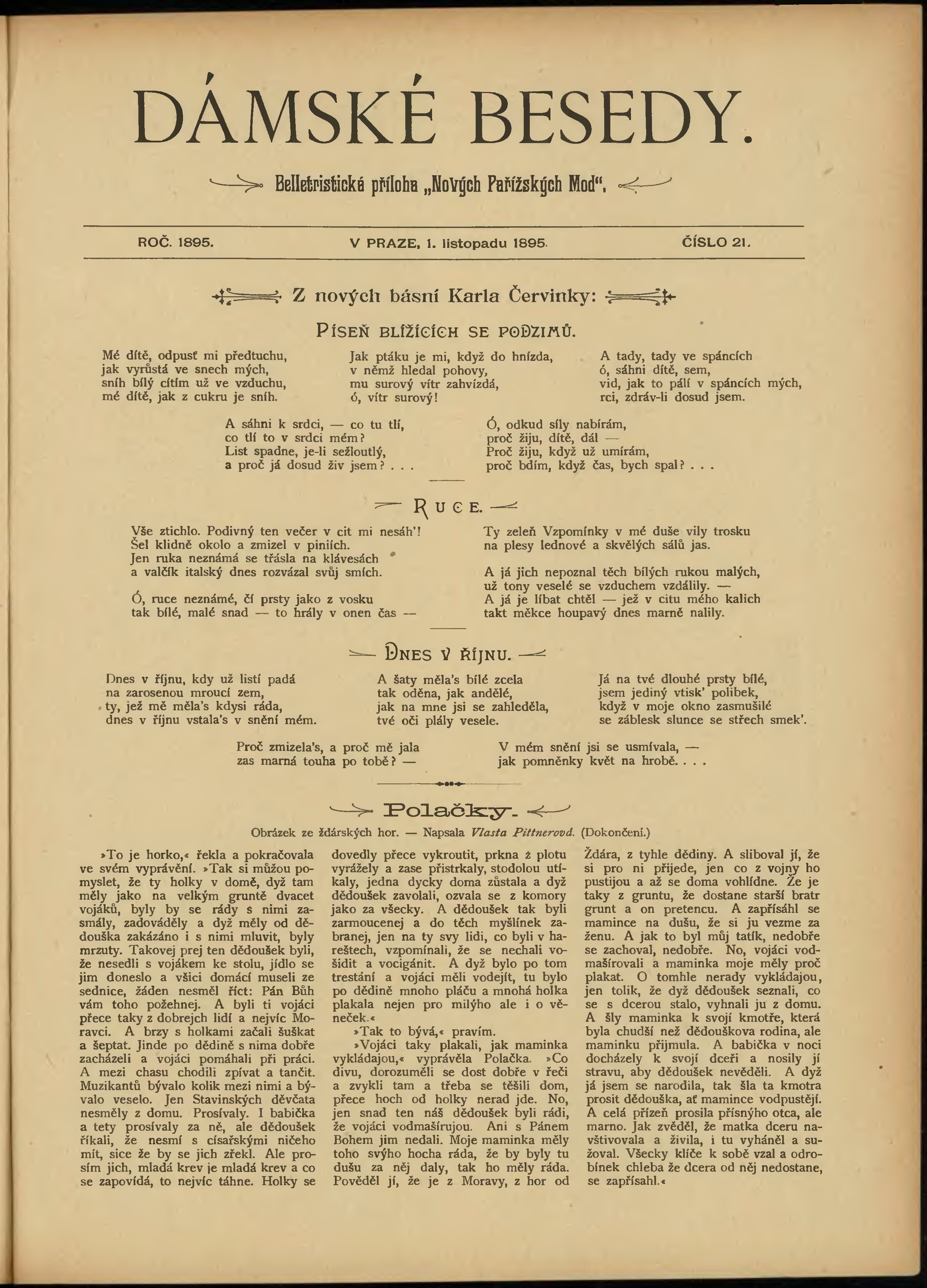 * Datum vydání výtisku: 1.11.1895 Číslo výtisku: 21 Typ výtisku: příloha Poznámky k výtisku: belletristická příloha;