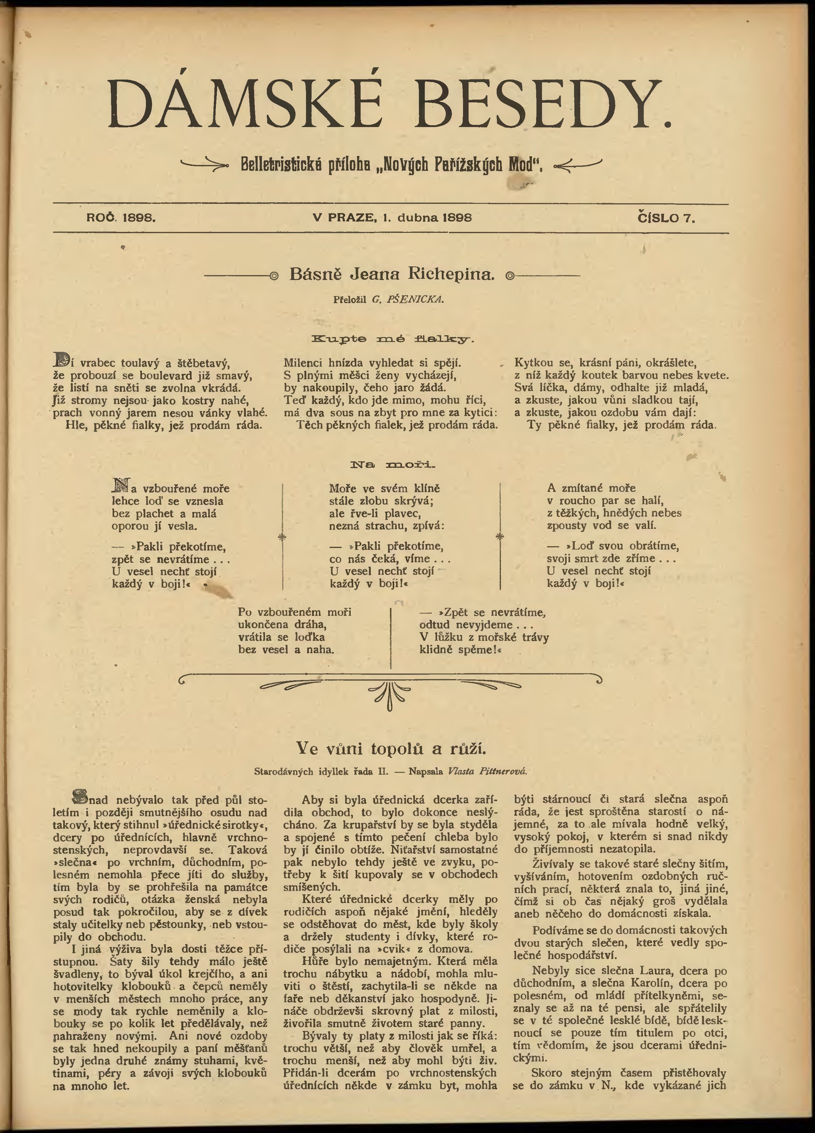 * Datum vydání výtisku: 1.4.1898 Číslo výtisku: 7 Typ výtisku: příloha Poznámky k výtisku: belletristická příloha;