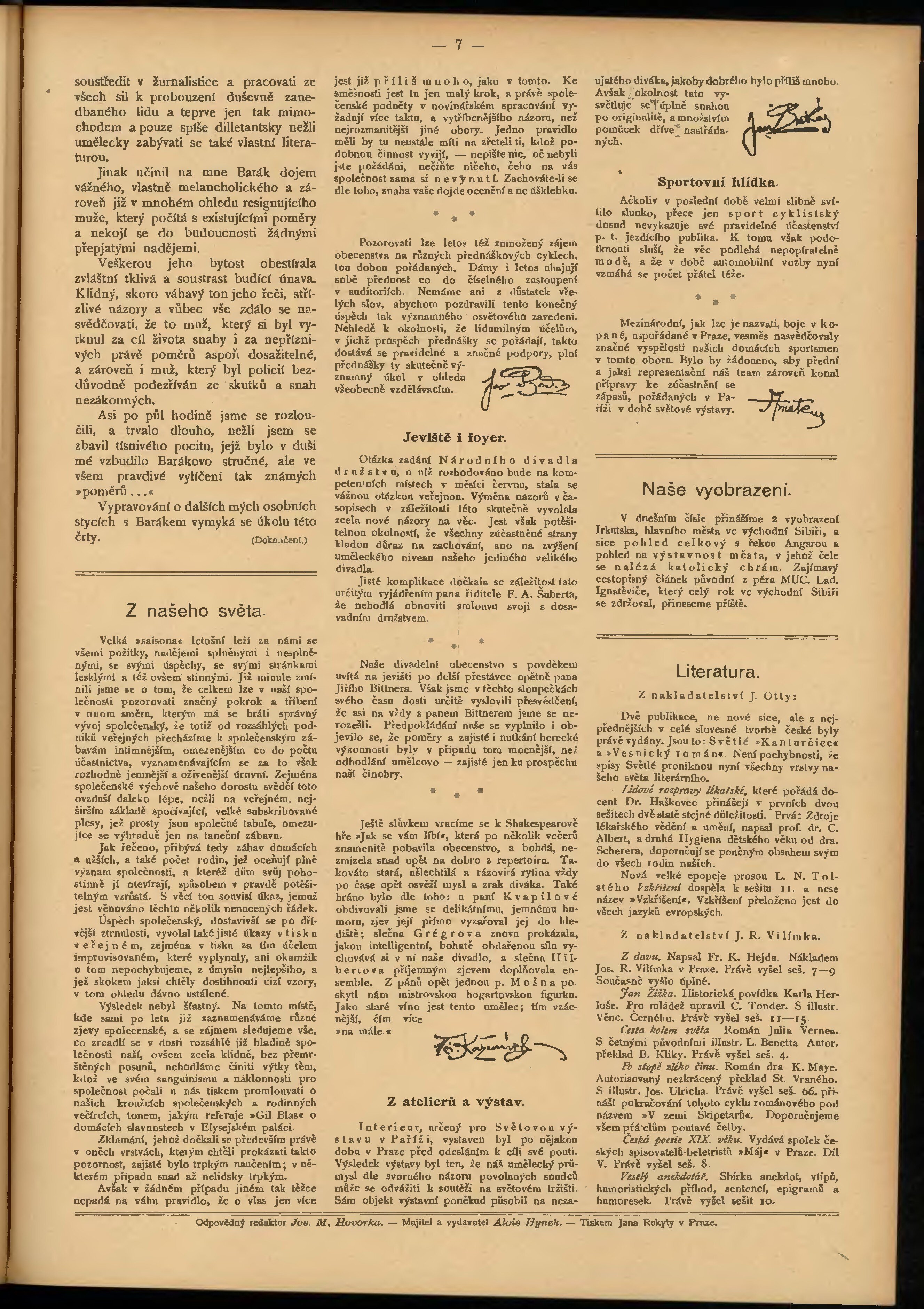 * Datum vydání výtisku: 15.3.1900 Číslo výtisku: 6 Typ výtisku: příloha Poznámky k výtisku: belletristická příloha;