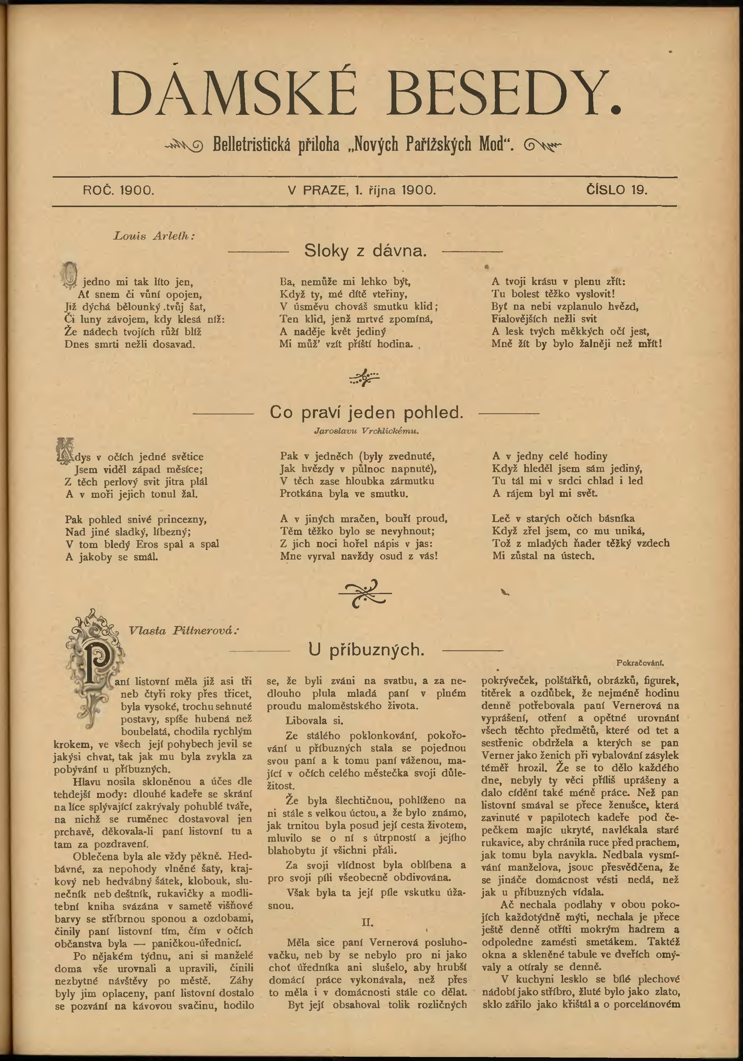 * Datum vydání výtisku: 1.10.1900 Číslo výtisku: 19 Typ výtisku: příloha Poznámky k výtisku: belletristická příloha;