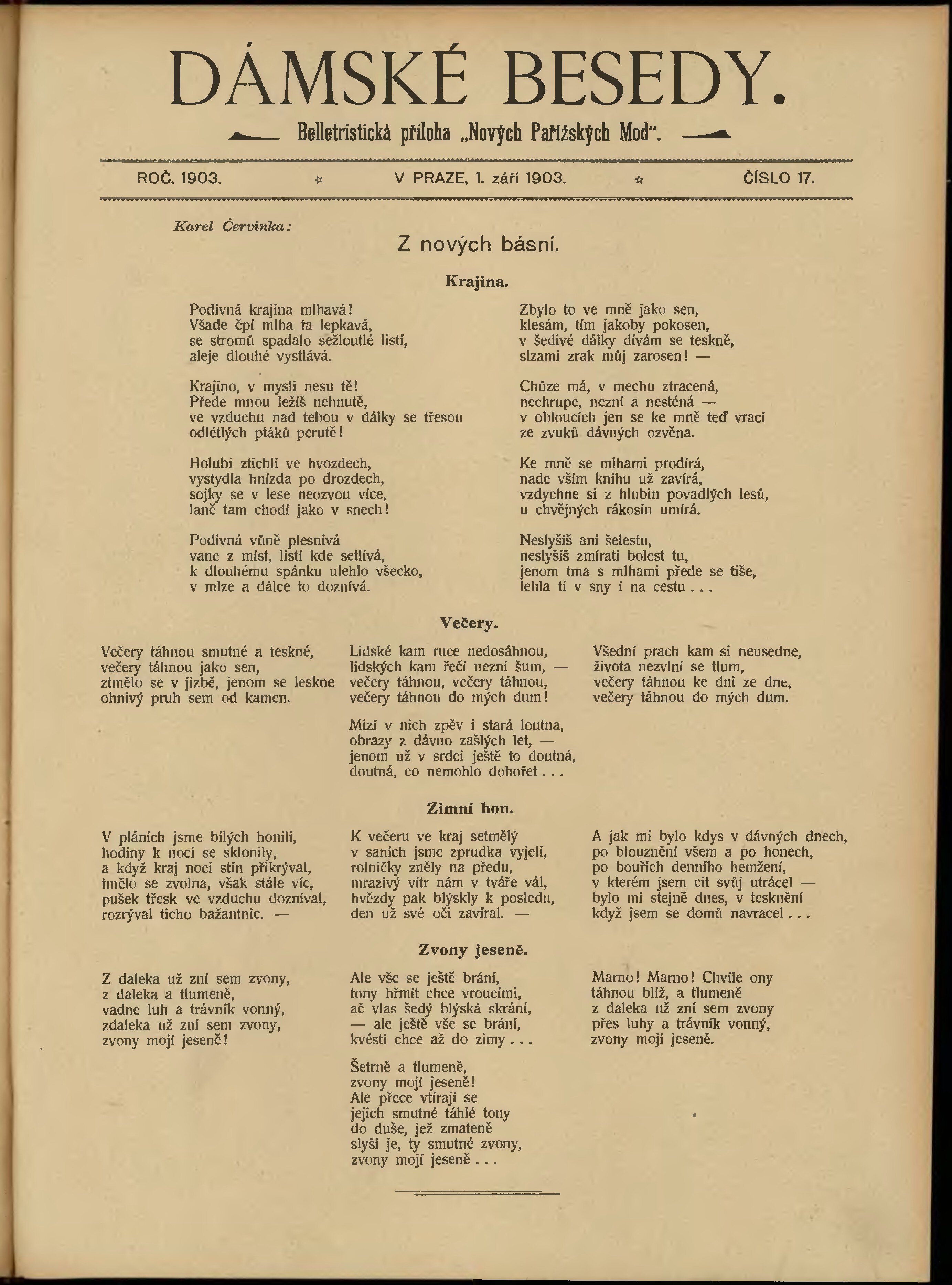 * Datum vydání výtisku: 1.9.1903 Číslo výtisku: 17 Typ výtisku: příloha Poznámky k výtisku: belletristická příloha;