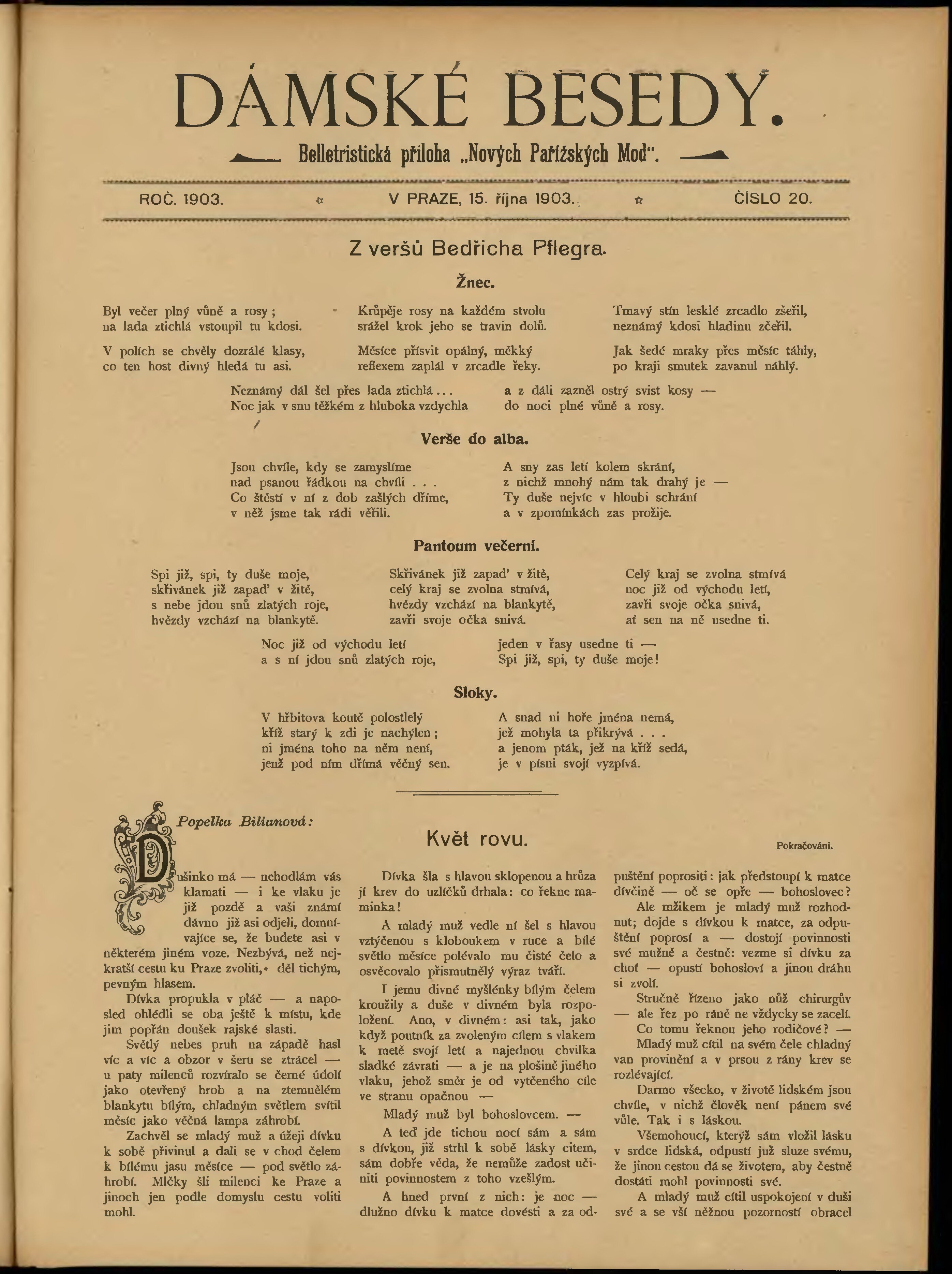 * Datum vydání výtisku: 15.10.1903 Číslo výtisku: 20 Typ výtisku: příloha Poznámky k výtisku: belletristická příloha;