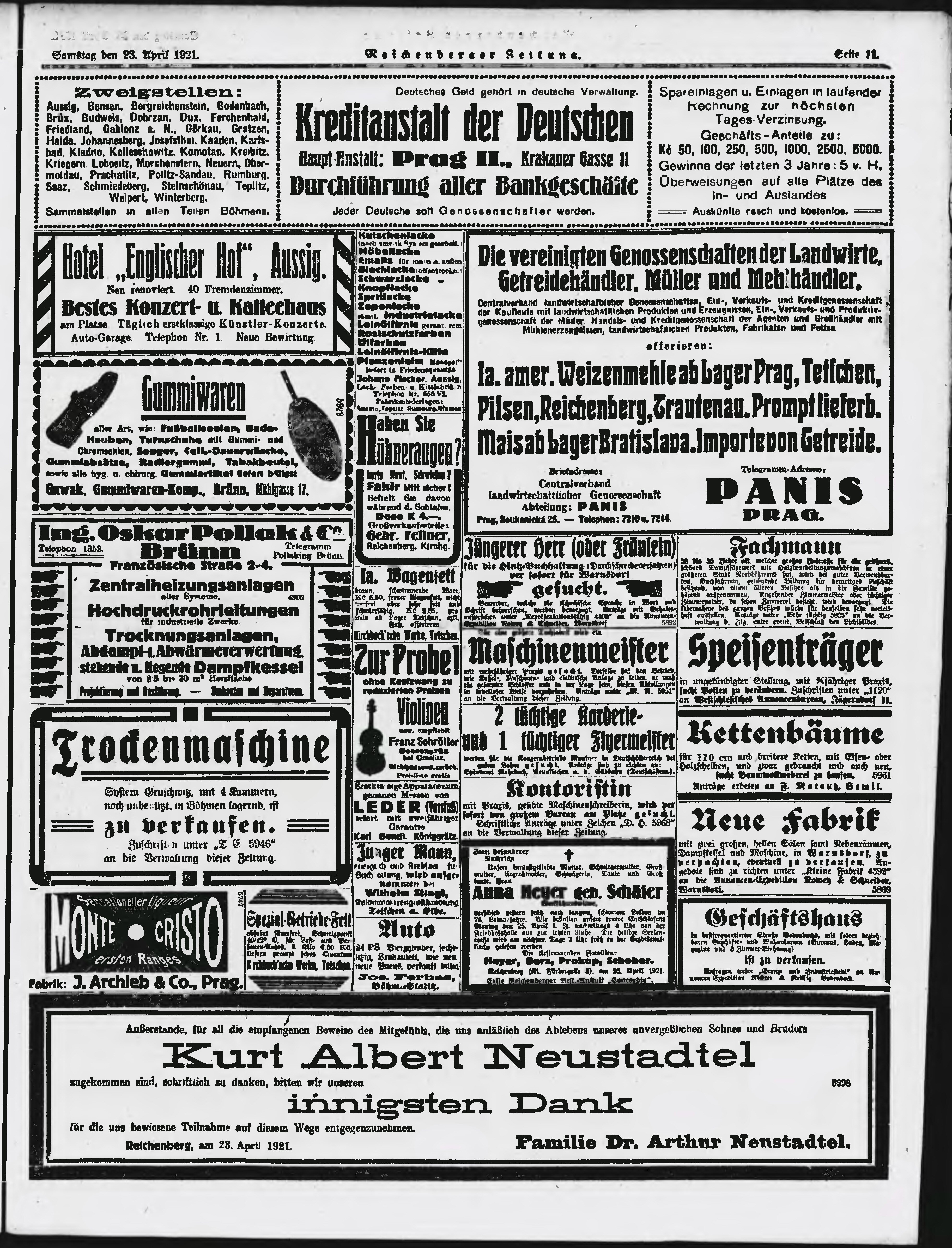 * Datum vydání výtisku: 23.4.1921 Číslo výtisku: 94 Poznámky k výtisku: ranní vydání;