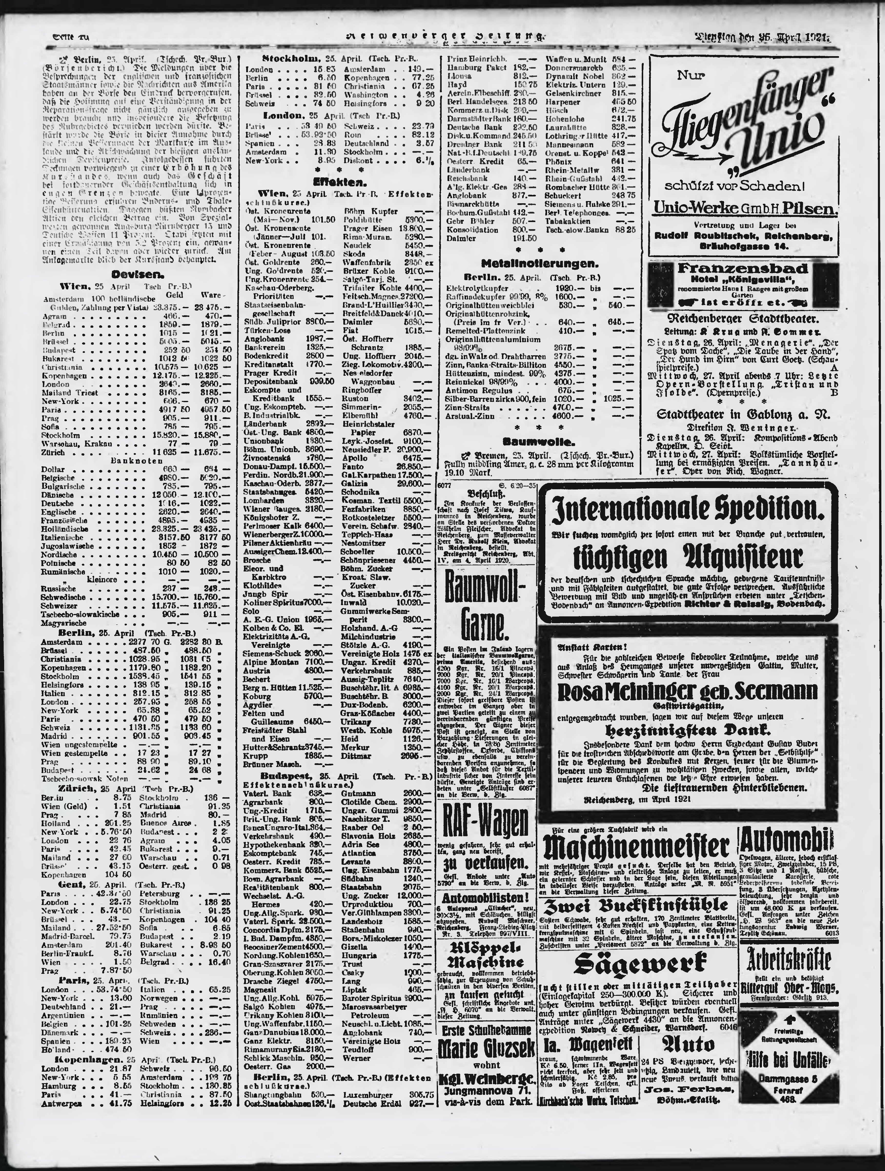 * Datum vydání výtisku: 26.4.1921 Číslo výtisku: 96 Poznámky k výtisku: ranní vydání;