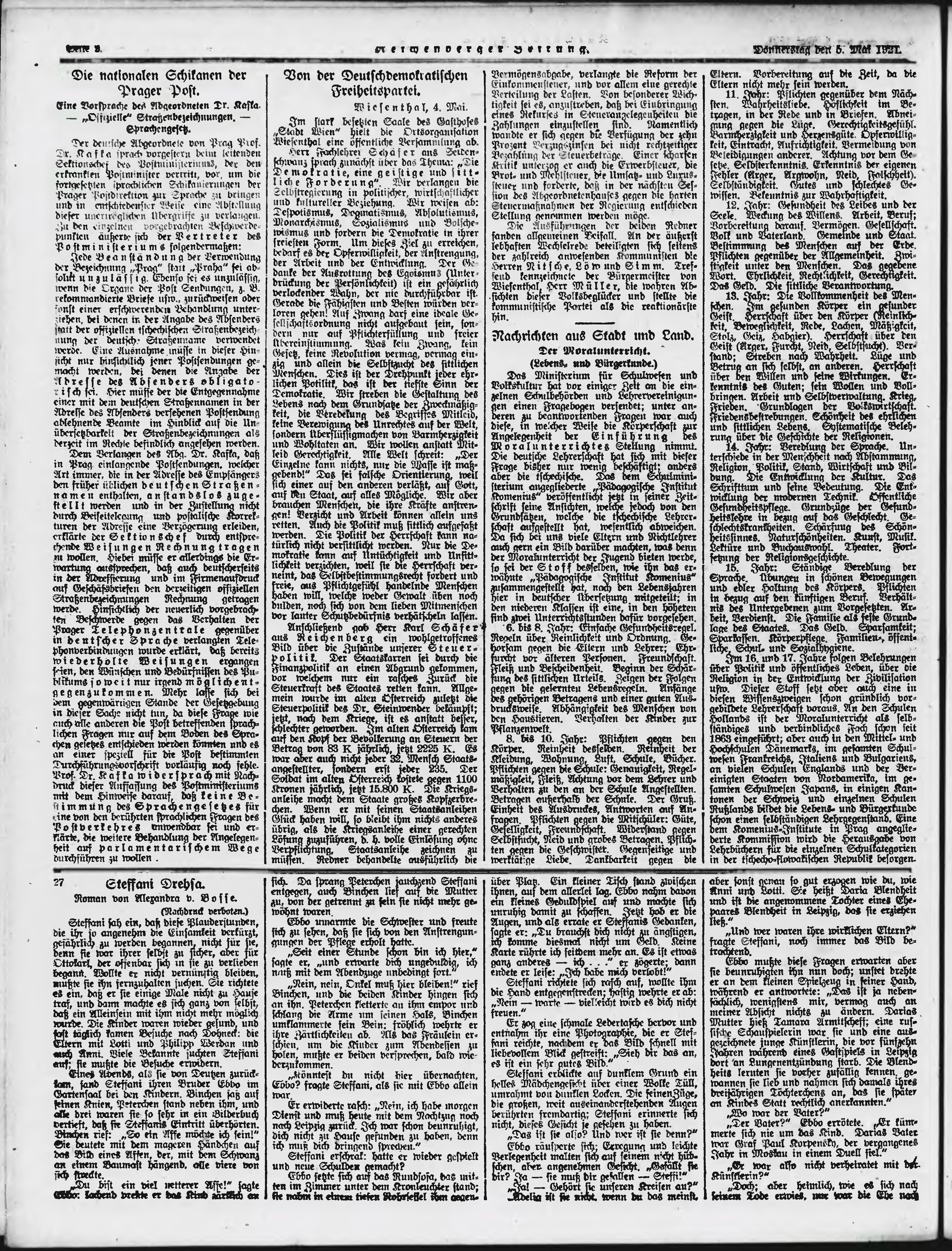 * Datum vydání výtisku: 5.5.1921 Číslo výtisku: 104 Poznámky k výtisku: ranní vydání;