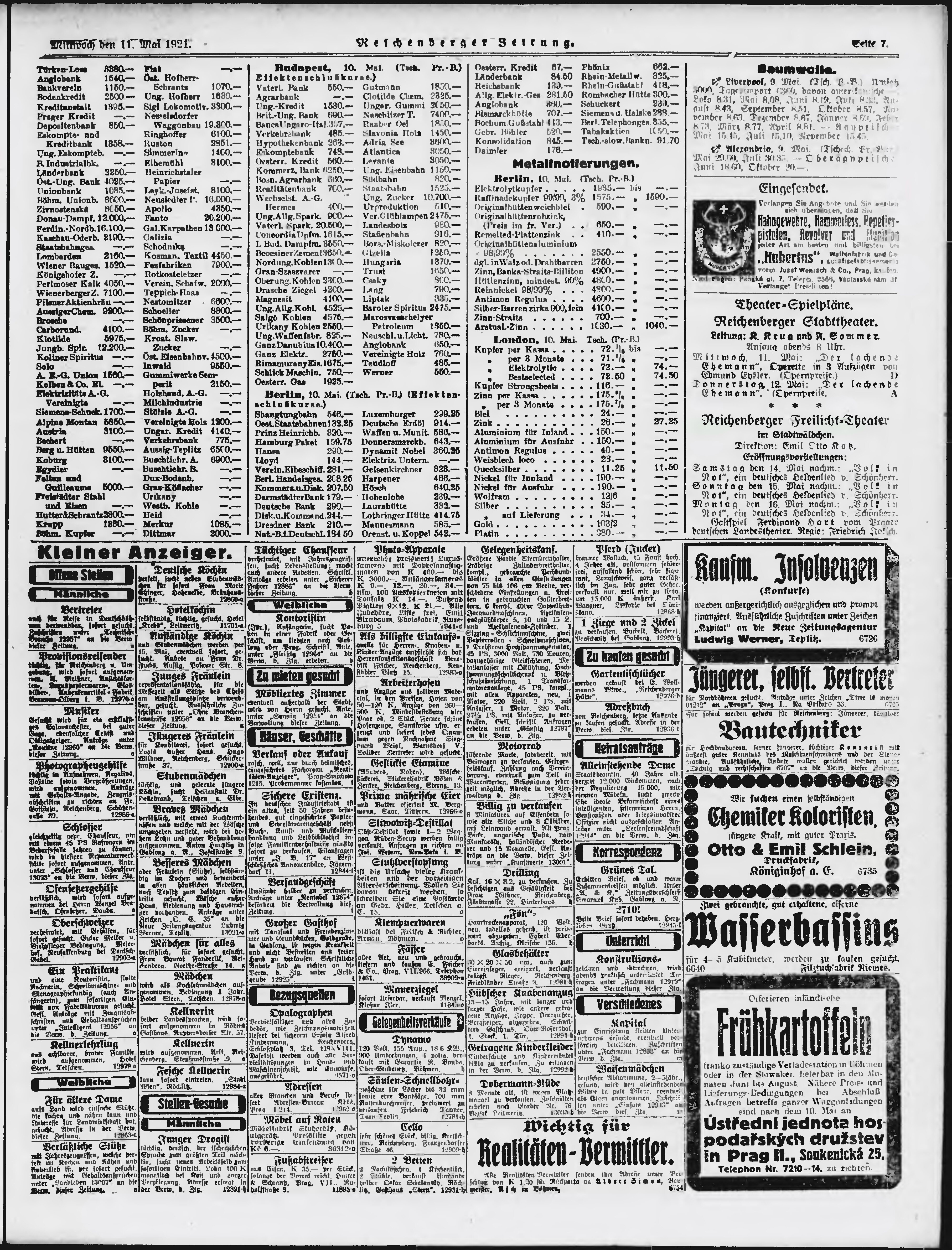 * Datum vydání výtisku: 11.5.1921 Číslo výtisku: 109 Poznámky k výtisku: ranní vydání;