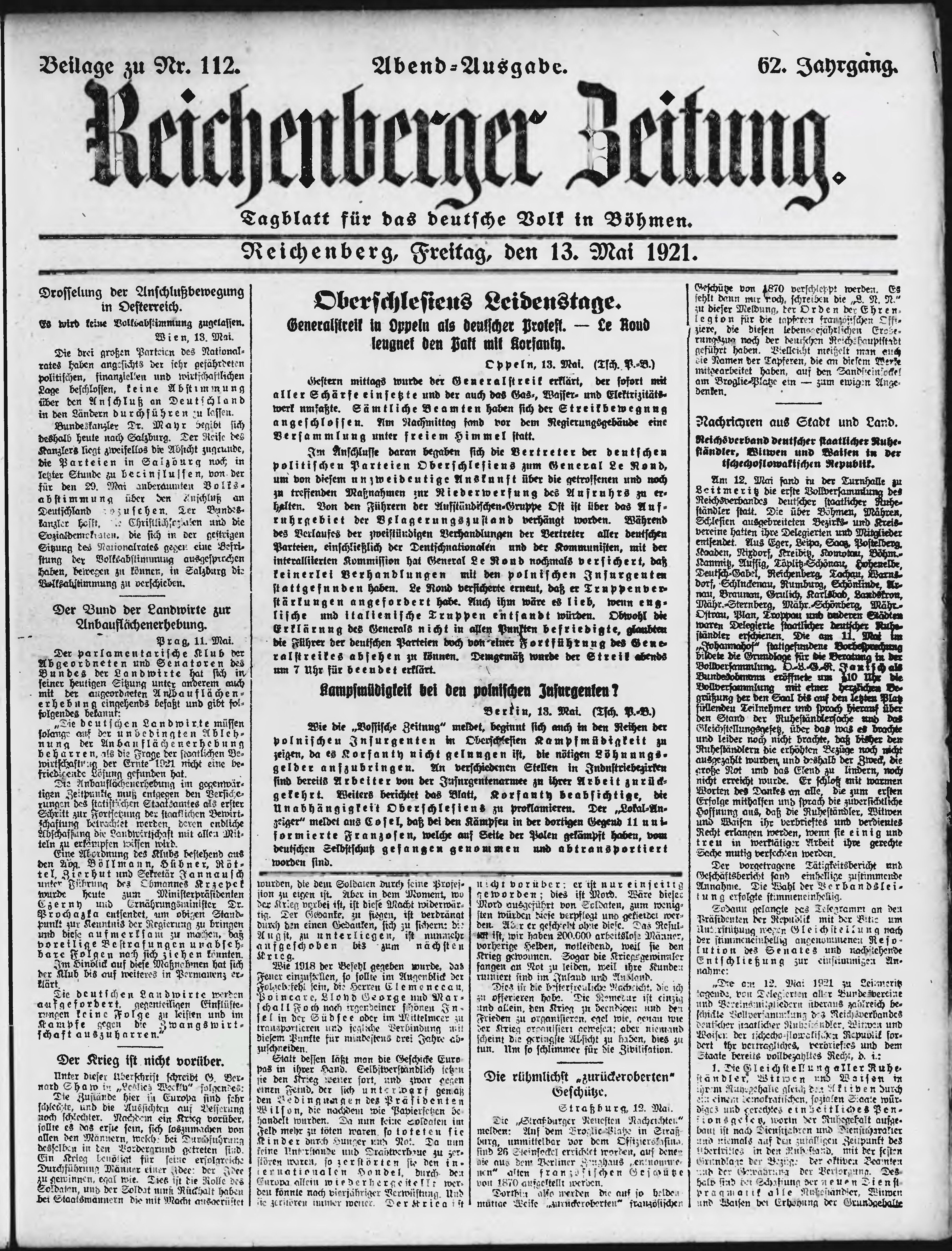 * Datum vydání výtisku: 13.5.1921 Číslo výtisku: 112 Typ výtisku: příloha Poznámky k výtisku: večerní vydání;