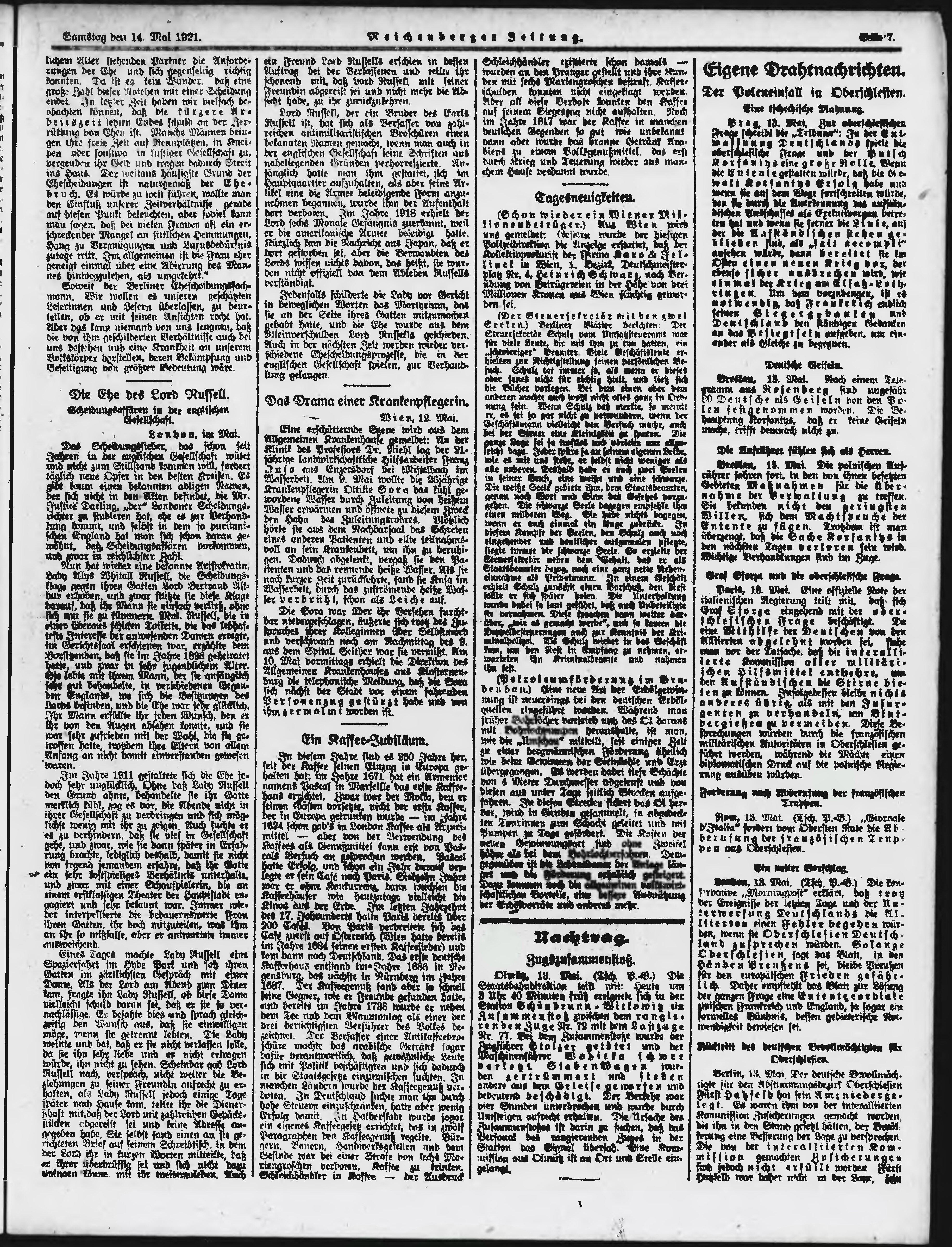 * Datum vydání výtisku: 14.5.1921 Číslo výtisku: 112 Poznámky k výtisku: ranní vydání;