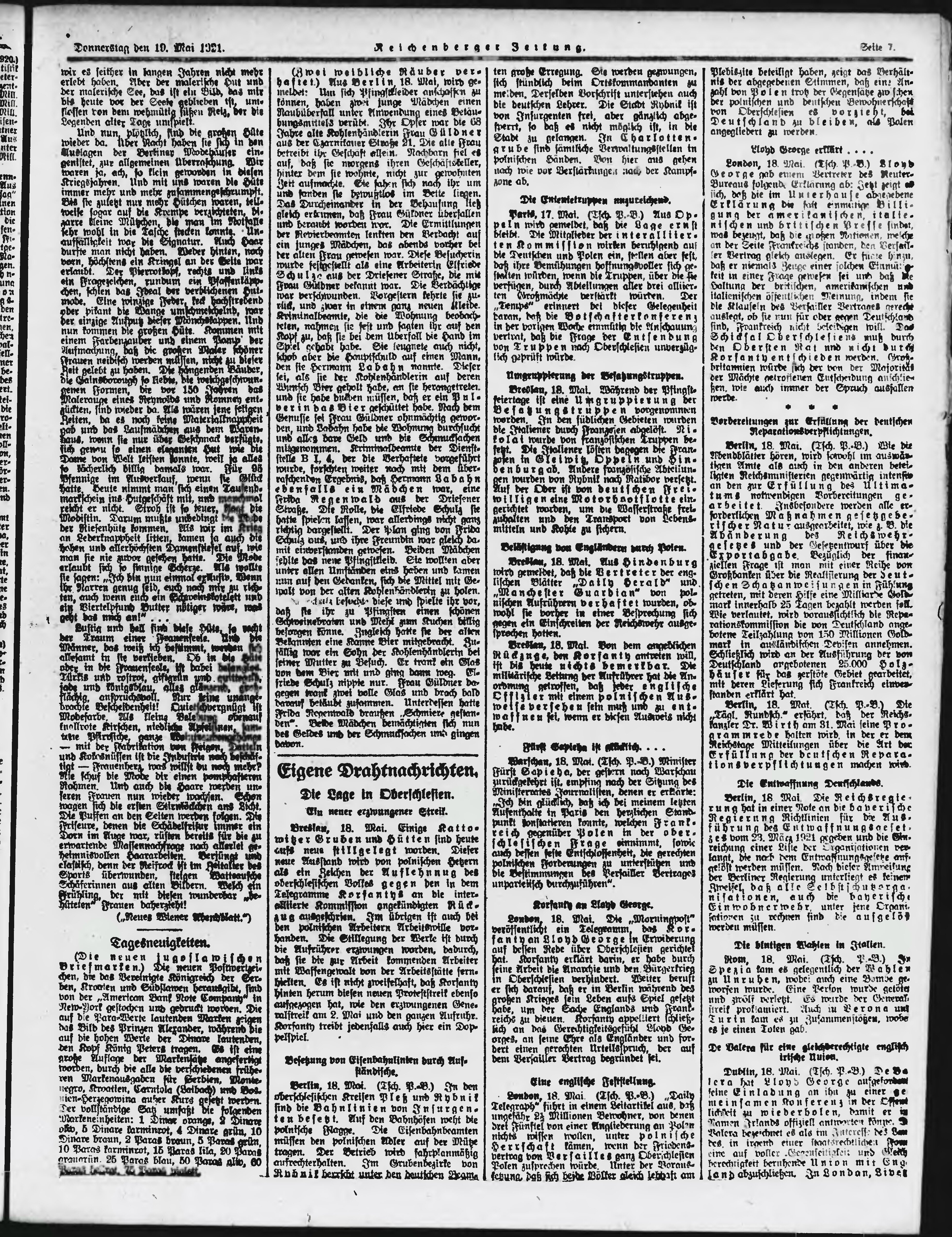 * Datum vydání výtisku: 19.5.1921 Číslo výtisku: 115 Poznámky k výtisku: ranní vydání;