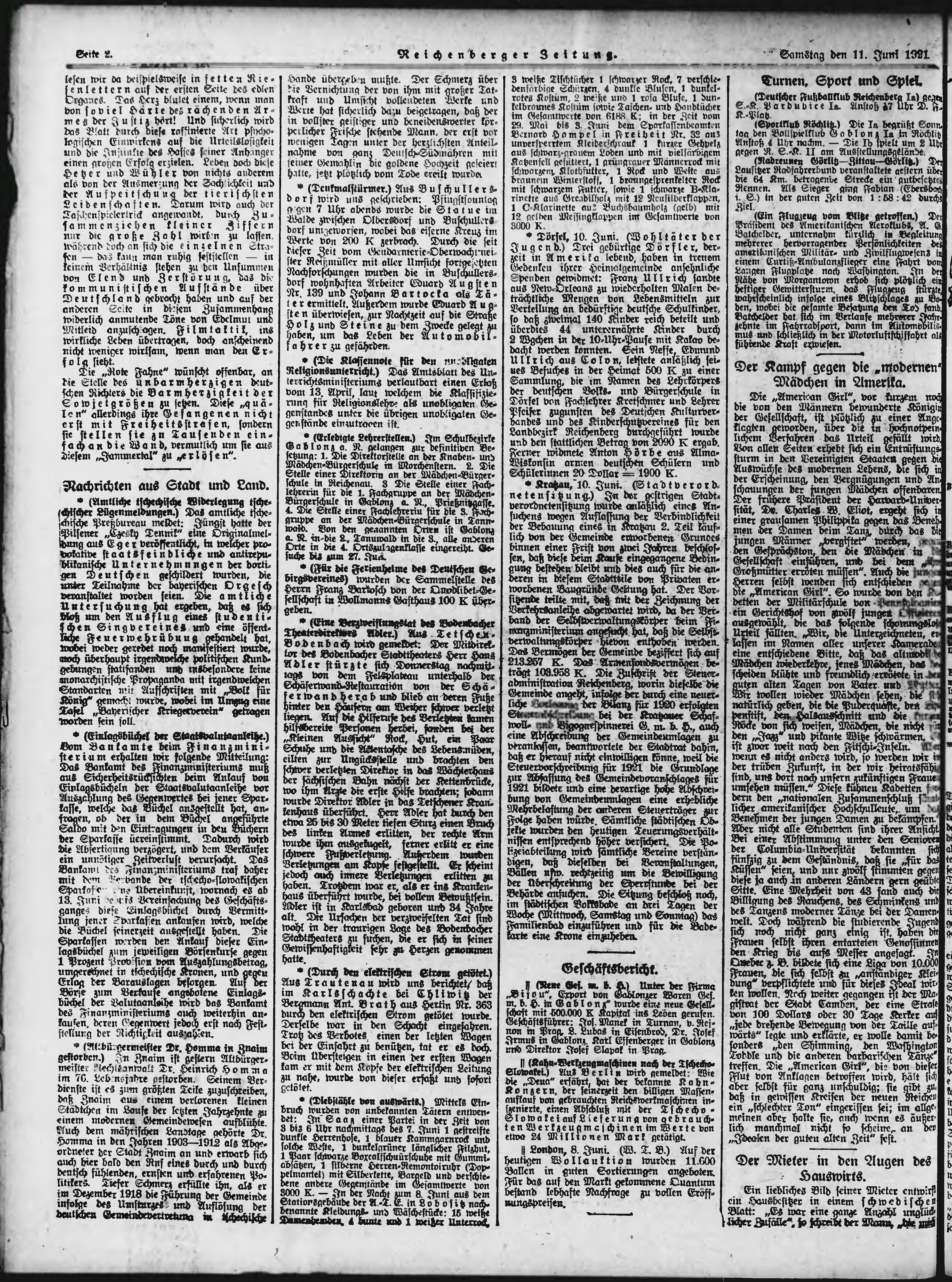 * Datum vydání výtisku: 11.6.1921 Číslo výtisku: 136 Typ výtisku: příloha Poznámky k výtisku: večerní vydání;