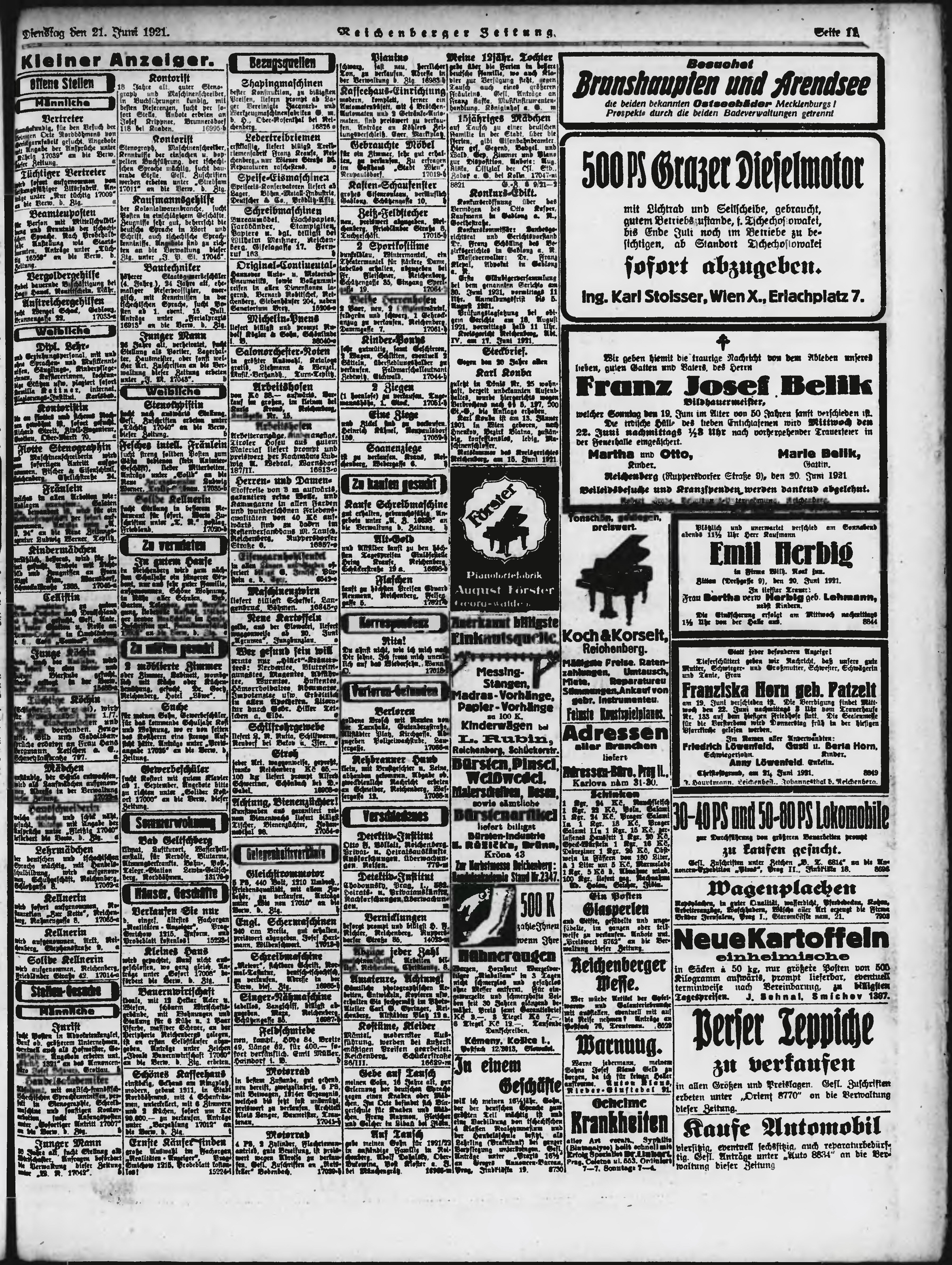 * Datum vydání výtisku: 21.6.1921 Číslo výtisku: 143 Poznámky k výtisku: ranní vydání;