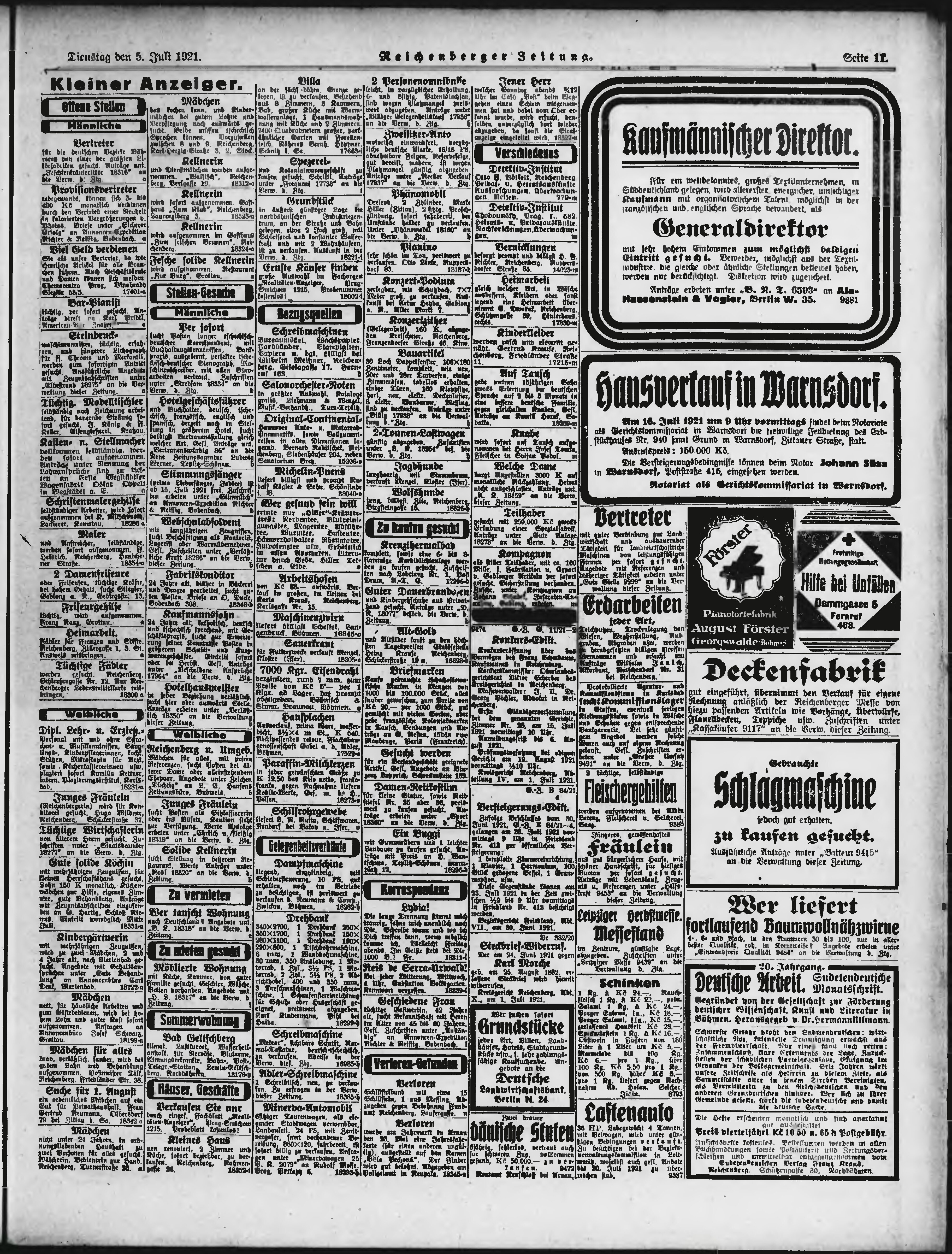 * Datum vydání výtisku: 5.7.1921 Číslo výtisku: 155 Poznámky k výtisku: ranní vydání;