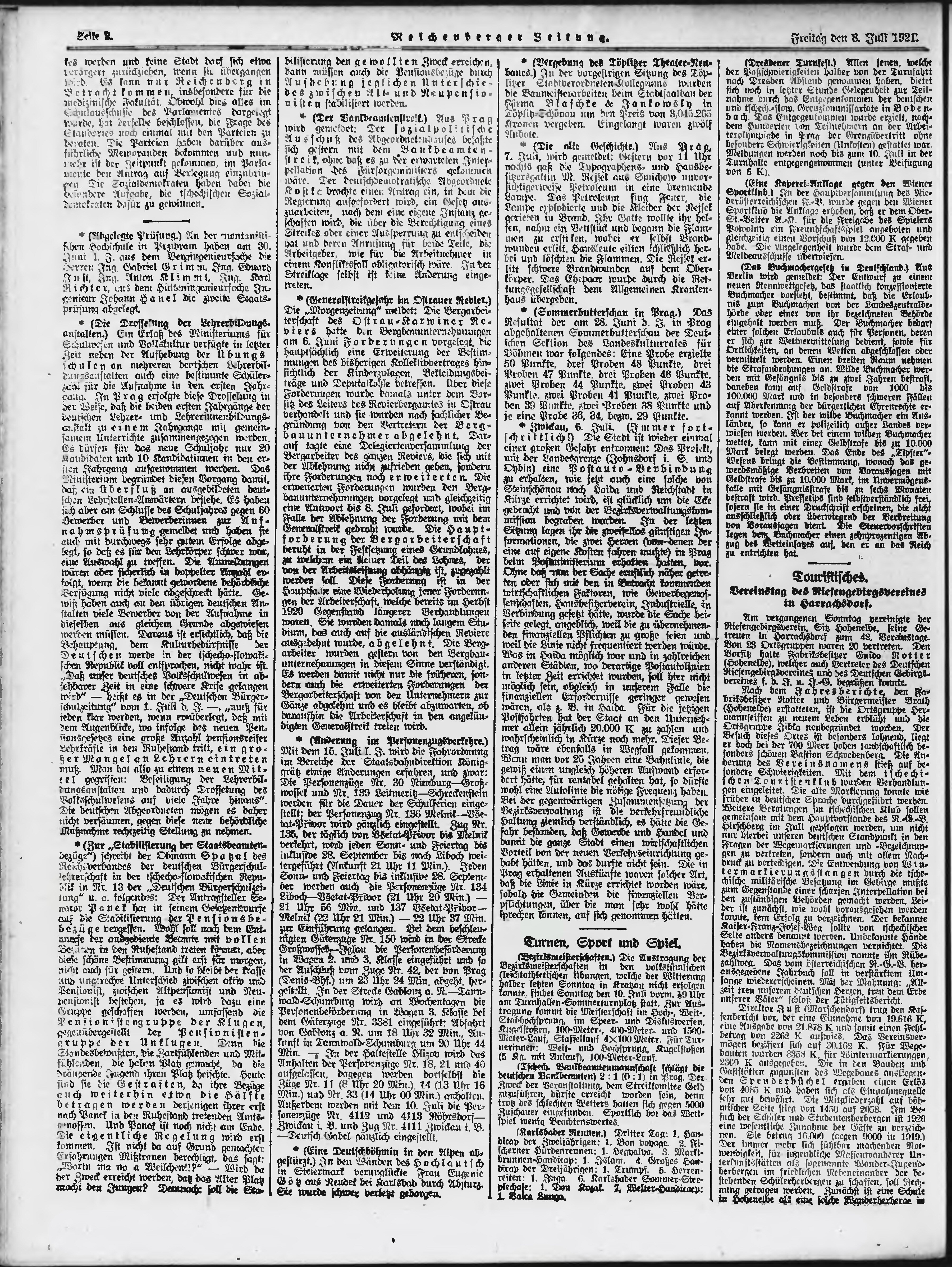 * Datum vydání výtisku: 8.7.1921 Číslo výtisku: 159 Typ výtisku: příloha Poznámky k výtisku: večerní vydání;