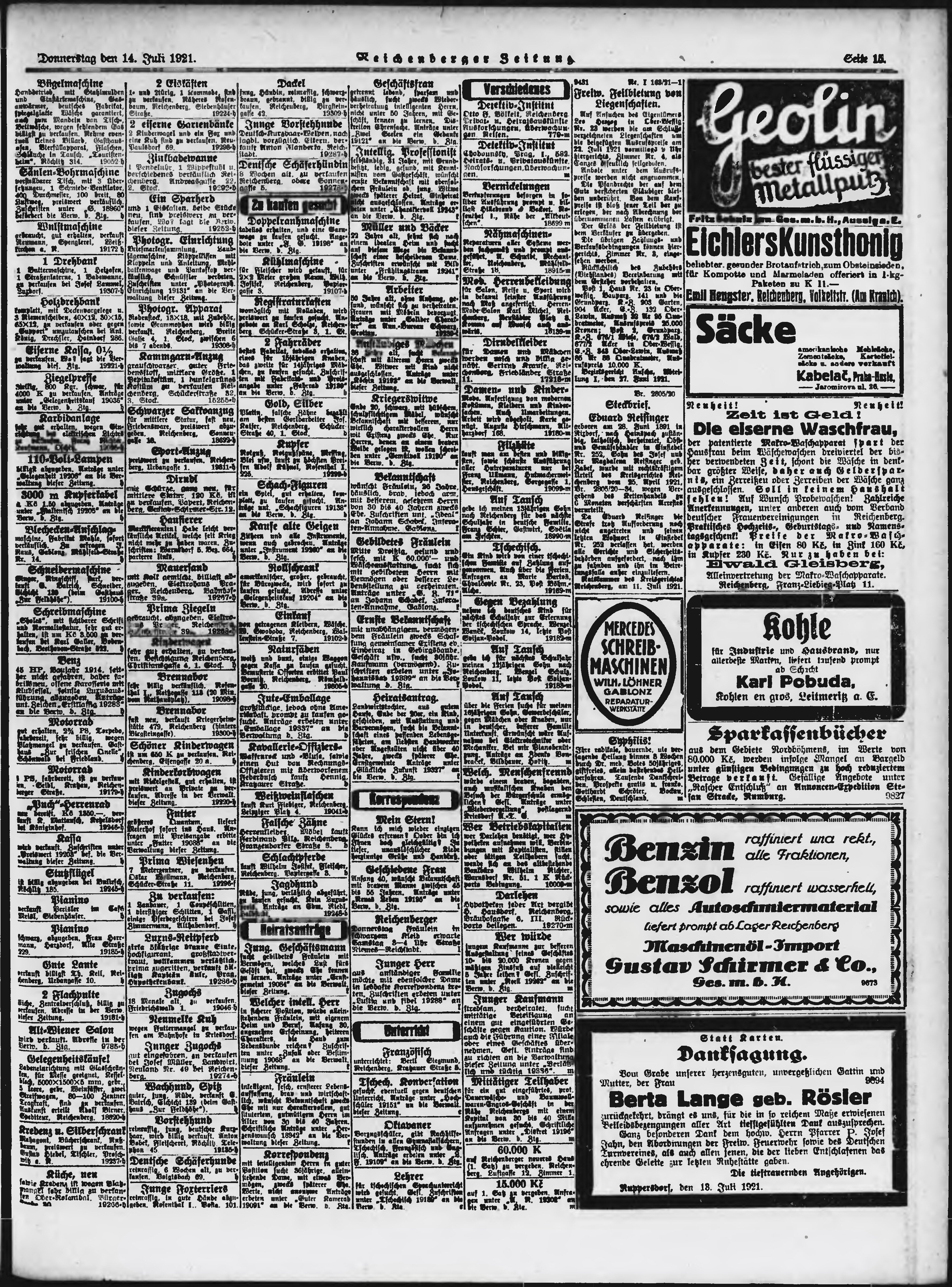 * Datum vydání výtisku: 14.7.1921 Číslo výtisku: 163 Poznámky k výtisku: ranní vydání;