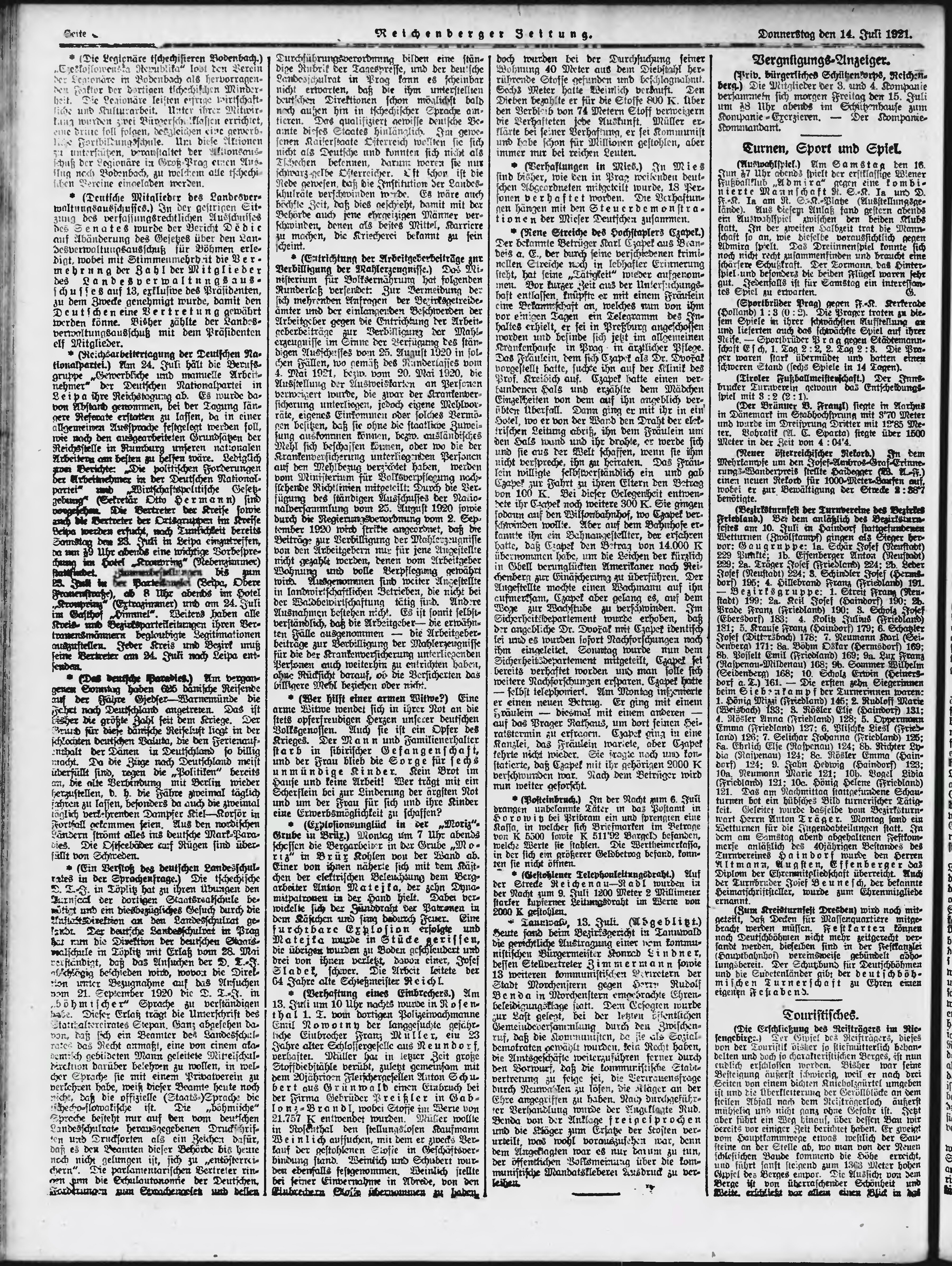 * Datum vydání výtisku: 14.7.1921 Číslo výtisku: 164 Typ výtisku: příloha Poznámky k výtisku: večerní vydání;