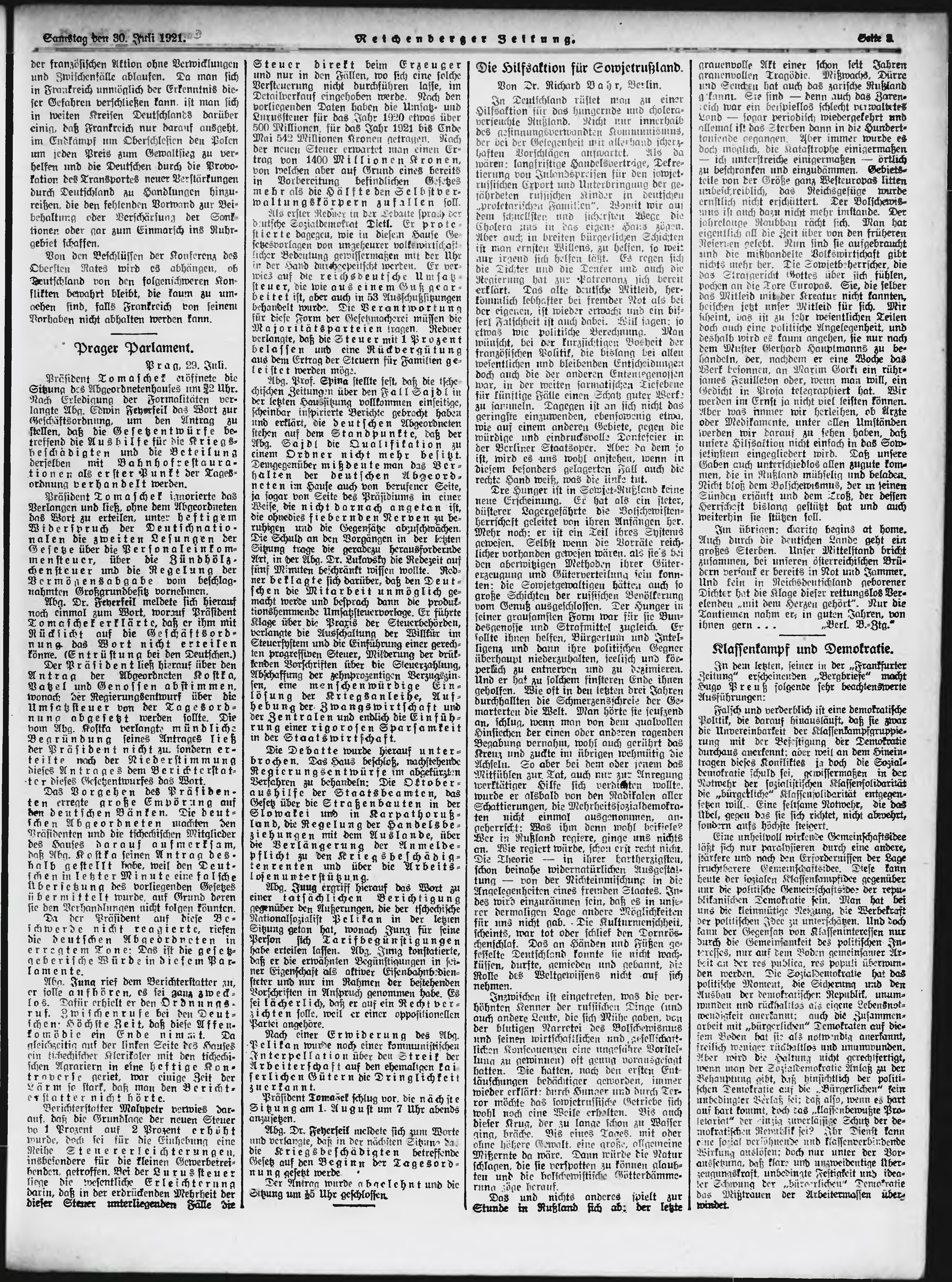 * Datum vydání výtisku: 30.7.1921 Číslo výtisku: 177 Poznámky k výtisku: ranní vydání;