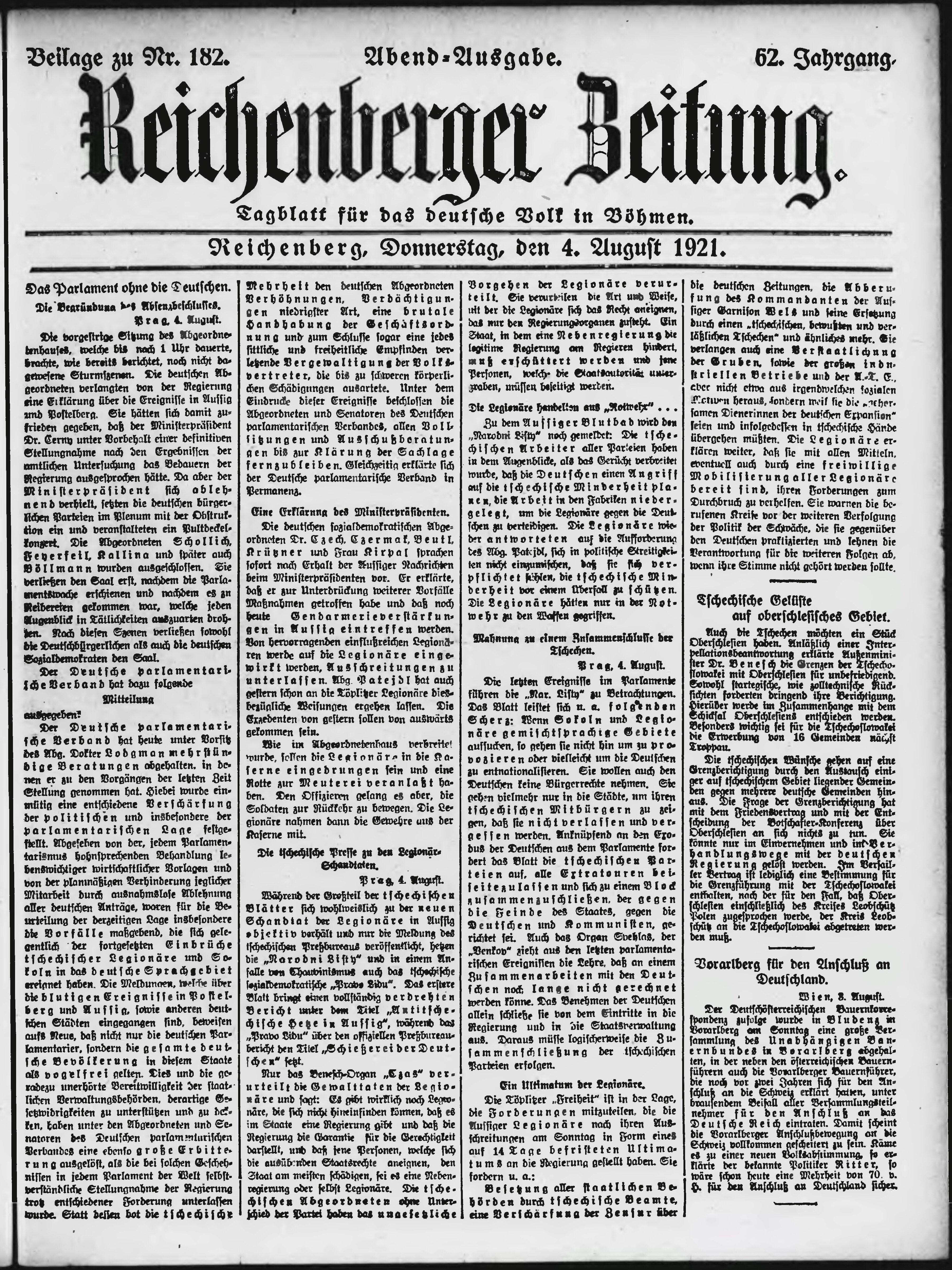 * Datum vydání výtisku: 4.8.1921 Číslo výtisku: 182 Typ výtisku: příloha Poznámky k výtisku: večerní vydání;