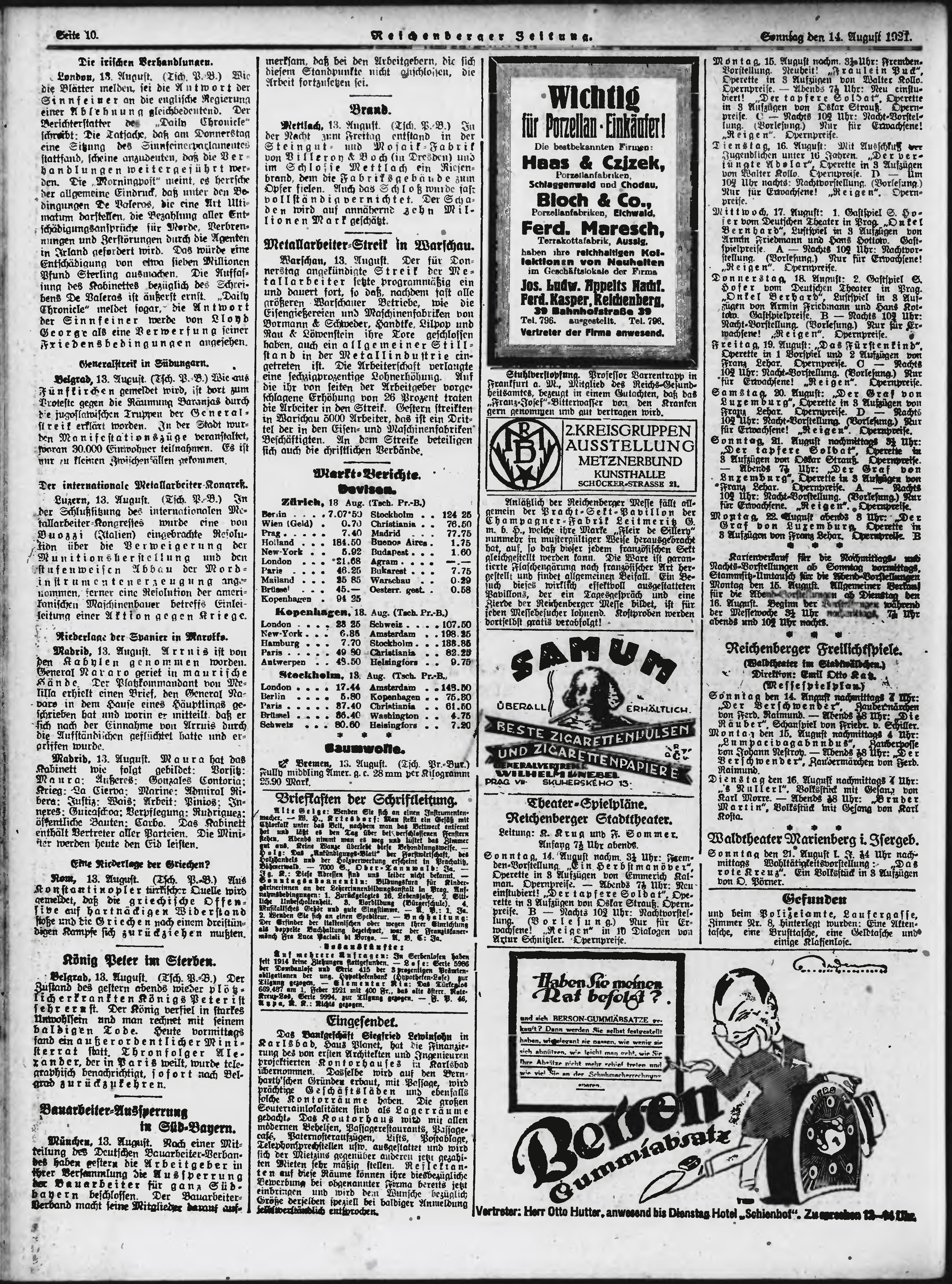 * Datum vydání výtisku: 14.8.1921 Číslo výtisku: 190 Poznámky k výtisku: ranní vydání;