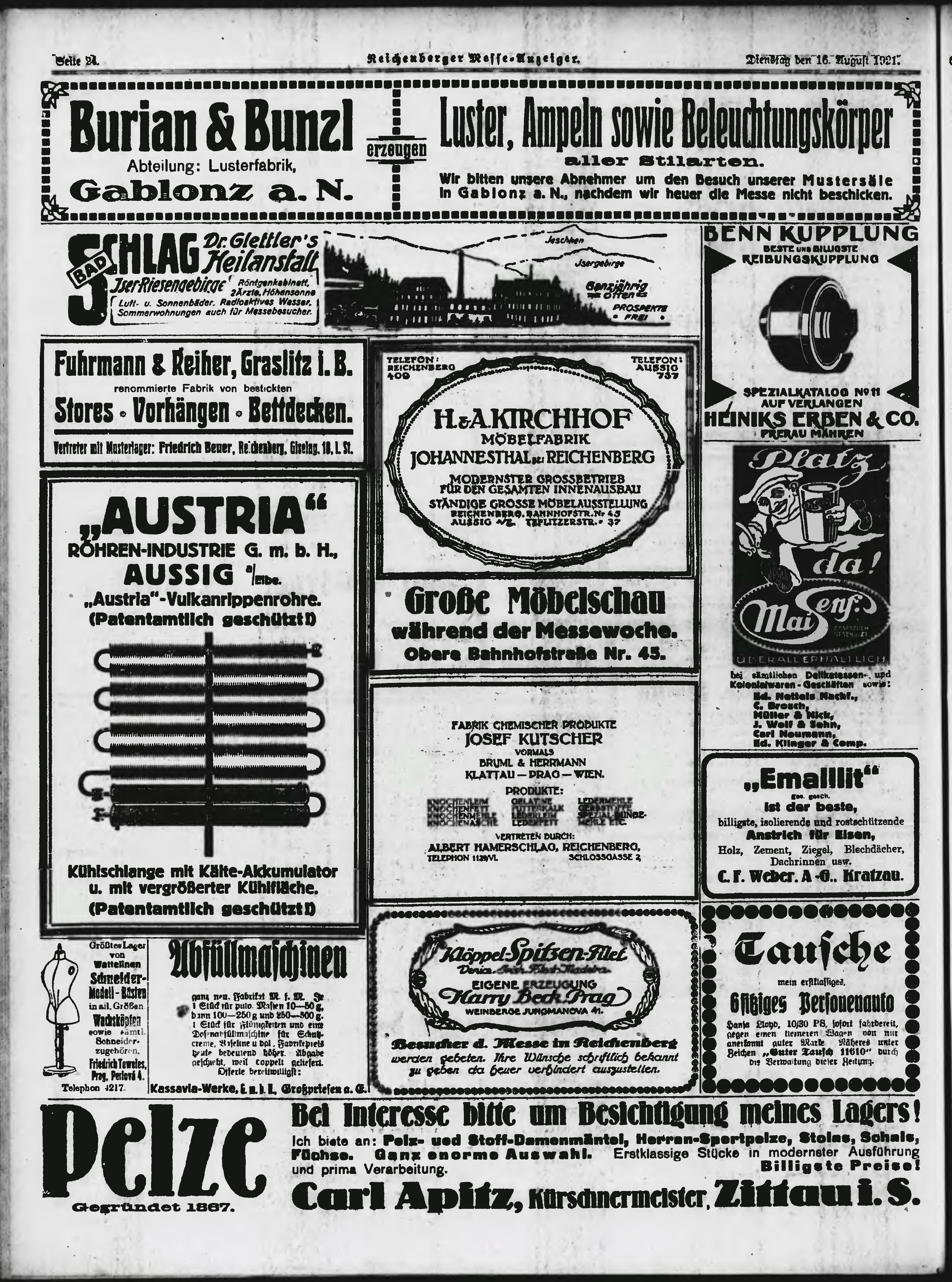 * Datum vydání výtisku: 16.8.1921 Číslo výtisku: 191 Poznámky k výtisku: ranní vydání;