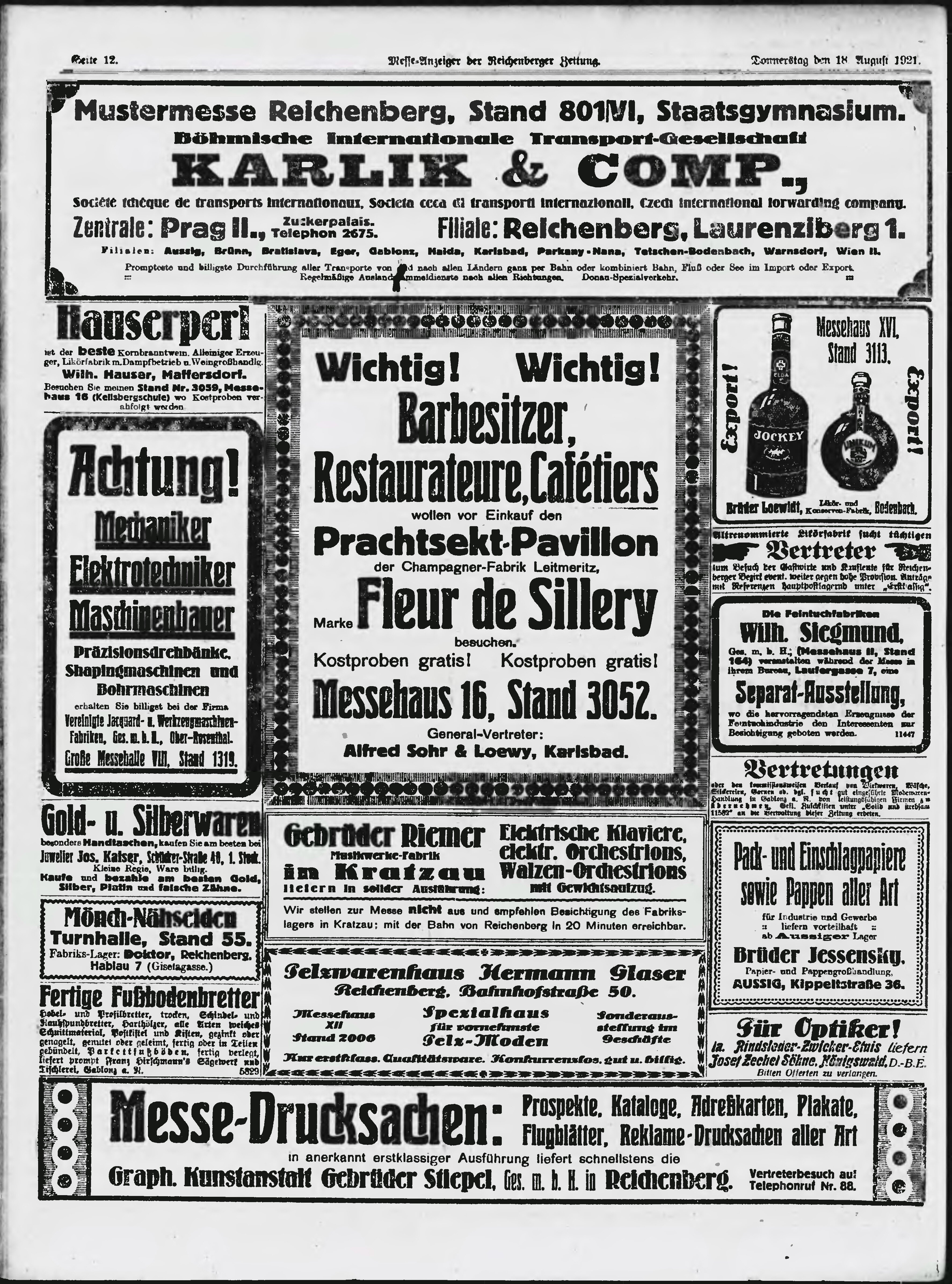 * Datum vydání výtisku: 18.8.1921 Číslo výtisku: 5 Typ výtisku: příloha