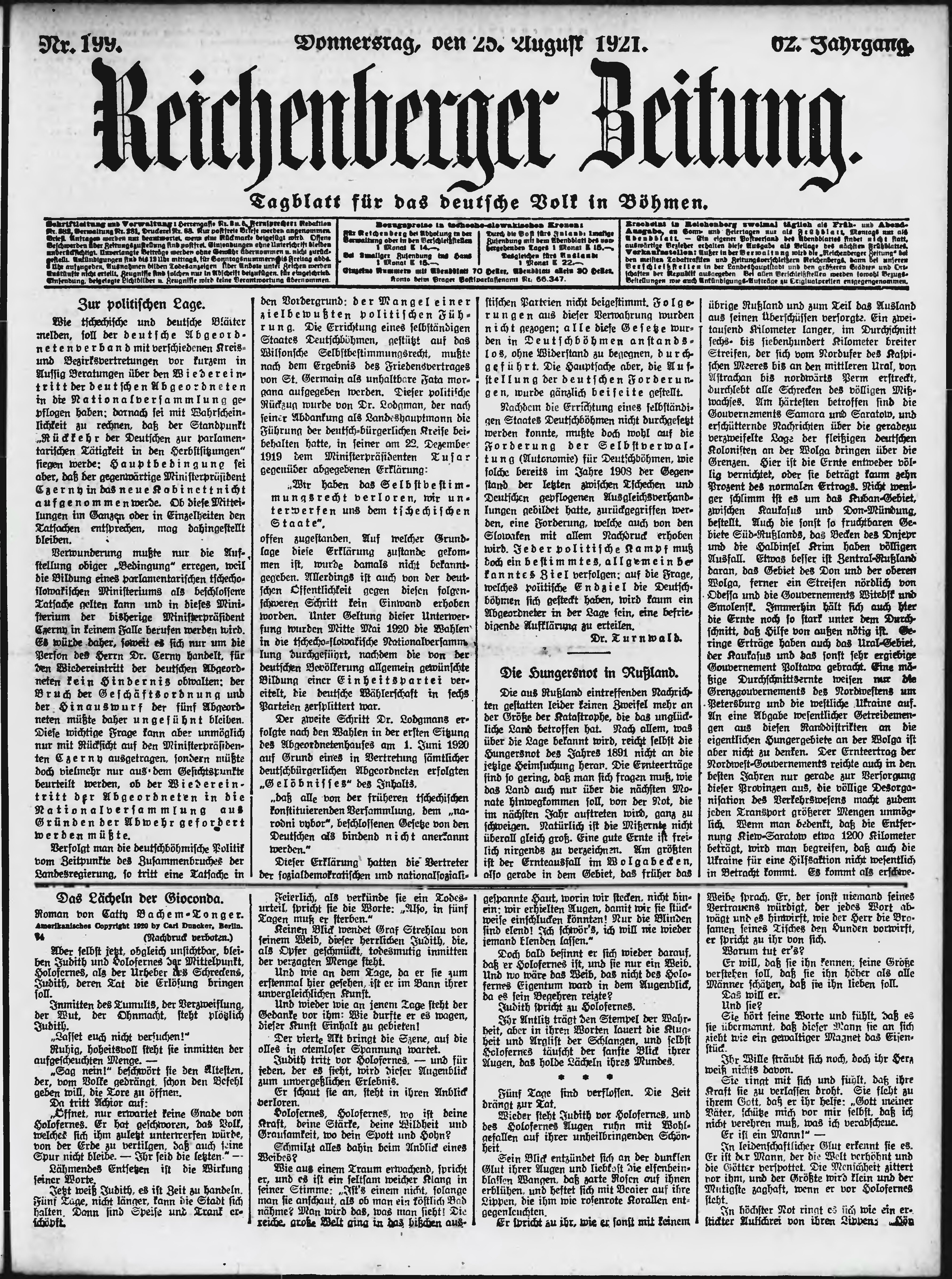 * Datum vydání výtisku: 25.8.1921 Číslo výtisku: 199 Poznámky k výtisku: ranní vydání;