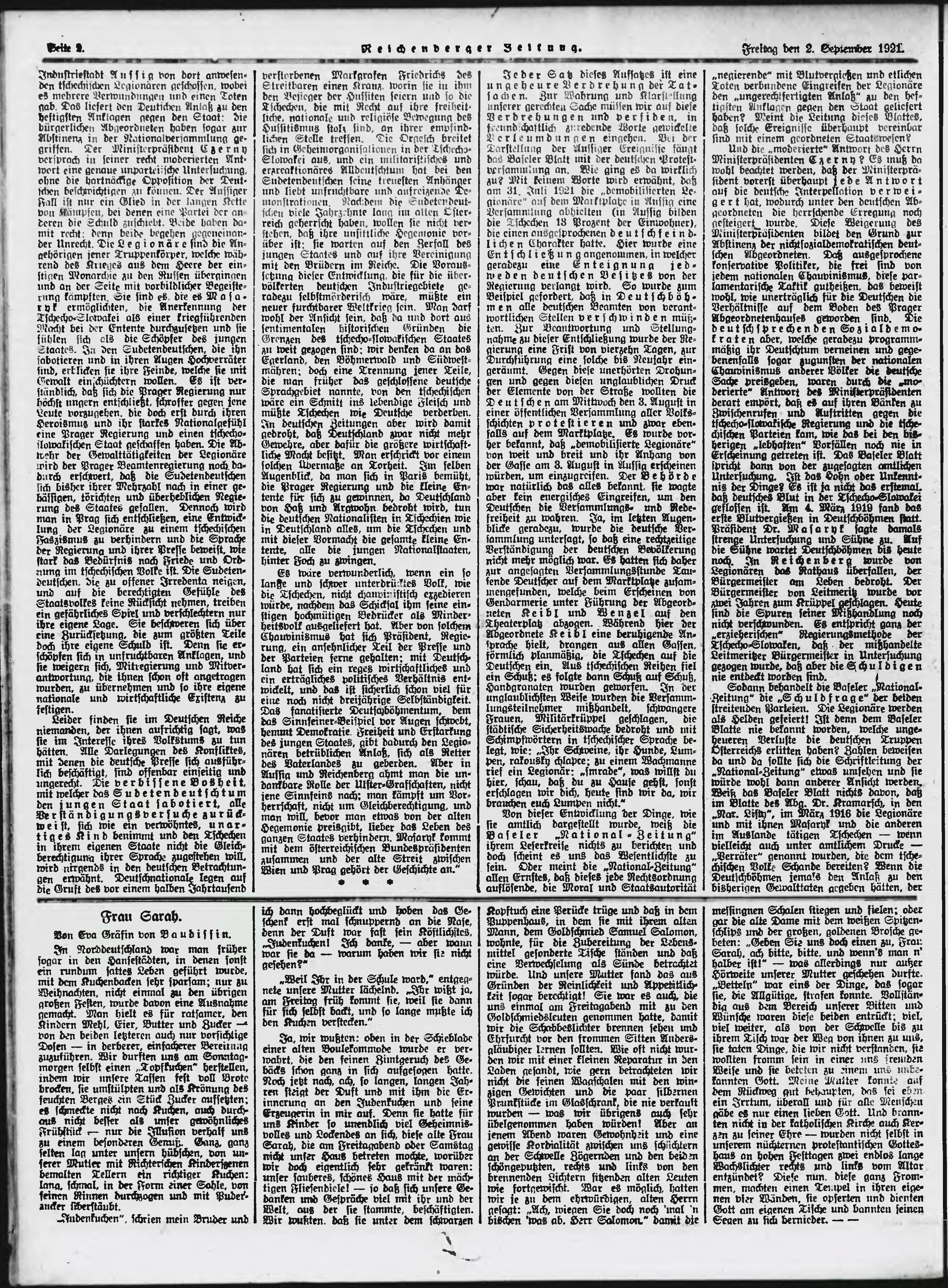 * Datum vydání výtisku: 2.9.1921 Číslo výtisku: 206 Poznámky k výtisku: ranní vydání;