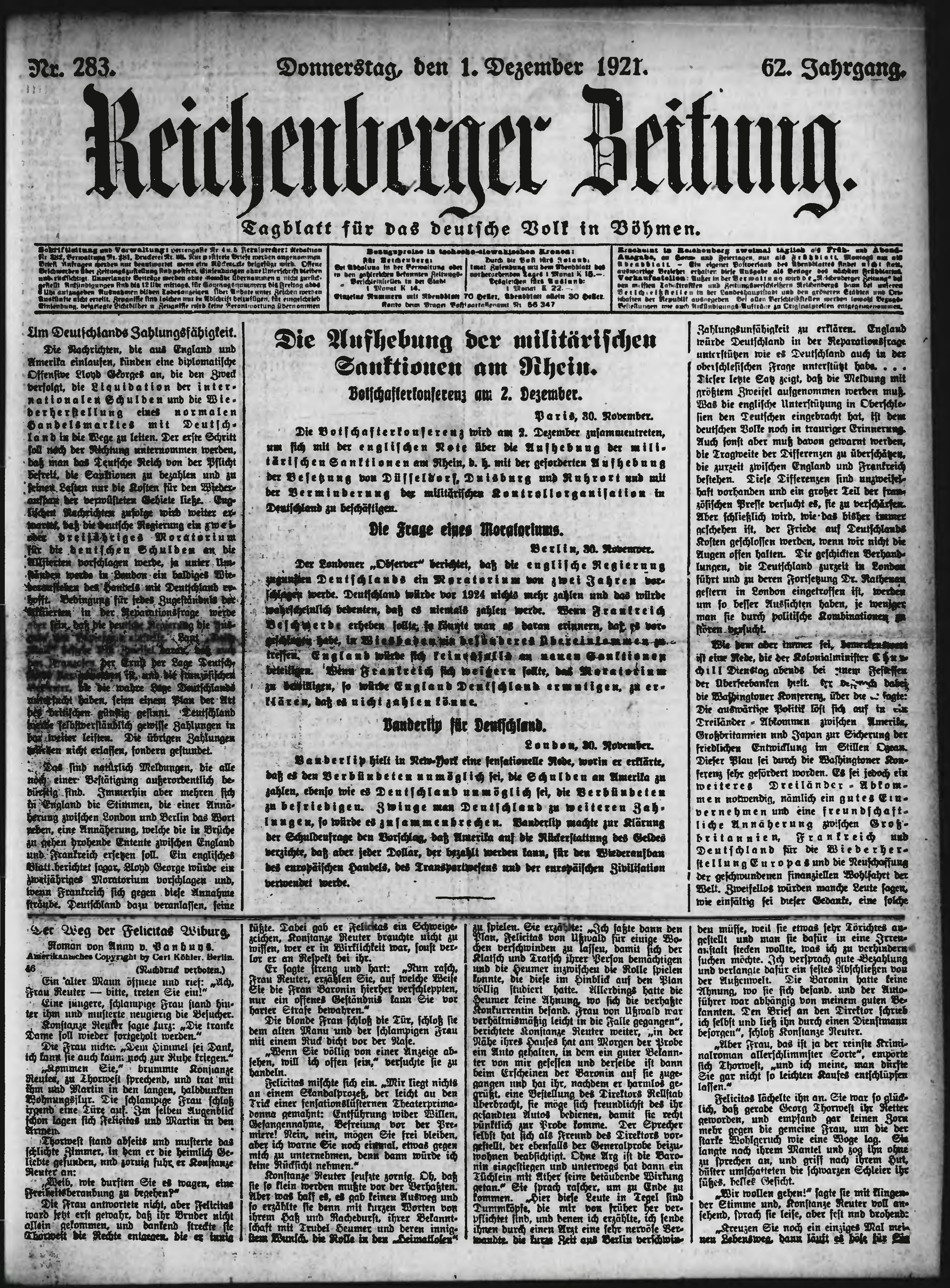 * Datum vydání výtisku: 1.12.1921 Číslo výtisku: 283 Poznámky k výtisku: ranní vydání;