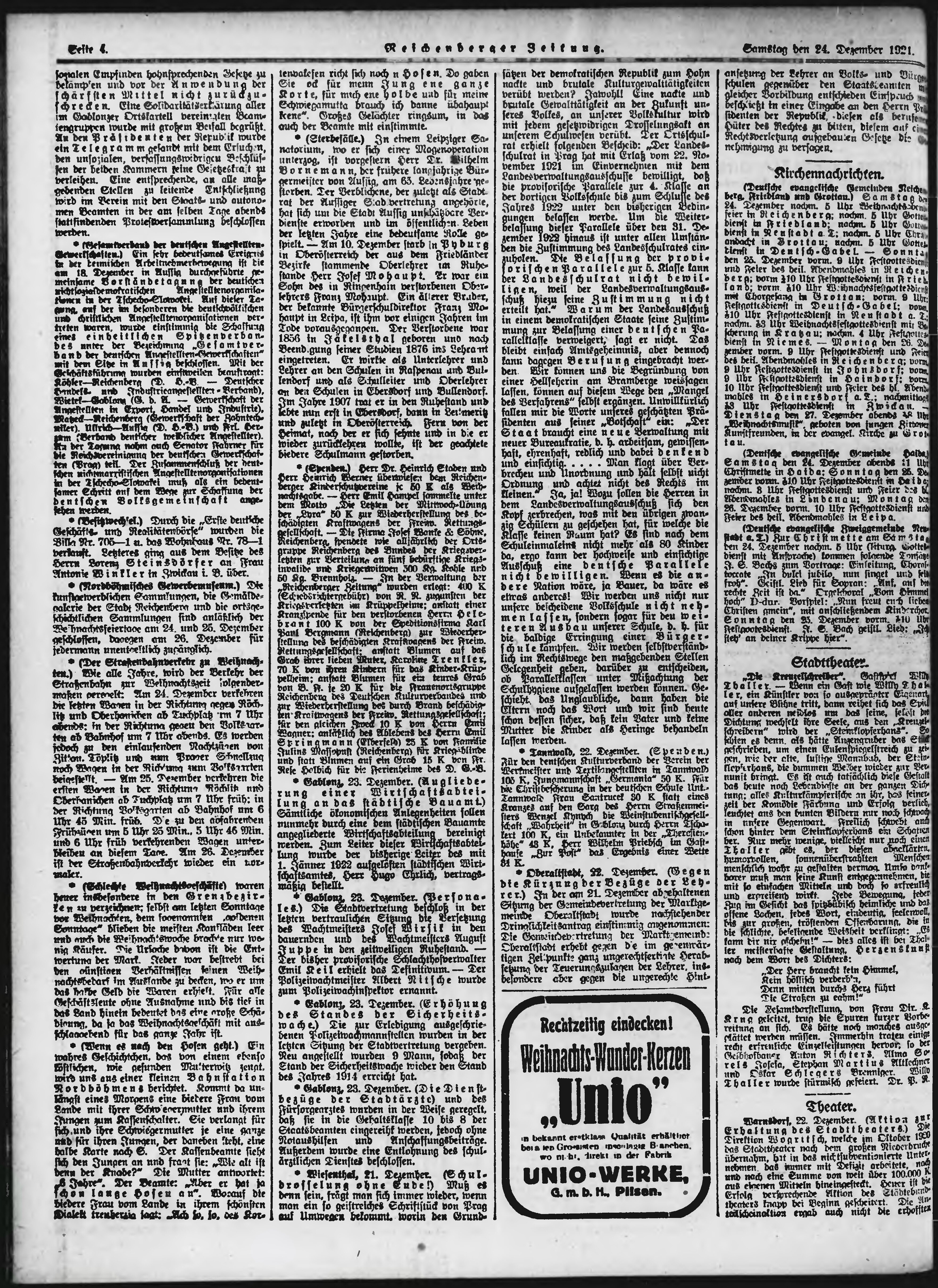* Datum vydání výtisku: 24.12.1921 Číslo výtisku: 303 Poznámky k výtisku: ranní vydání;