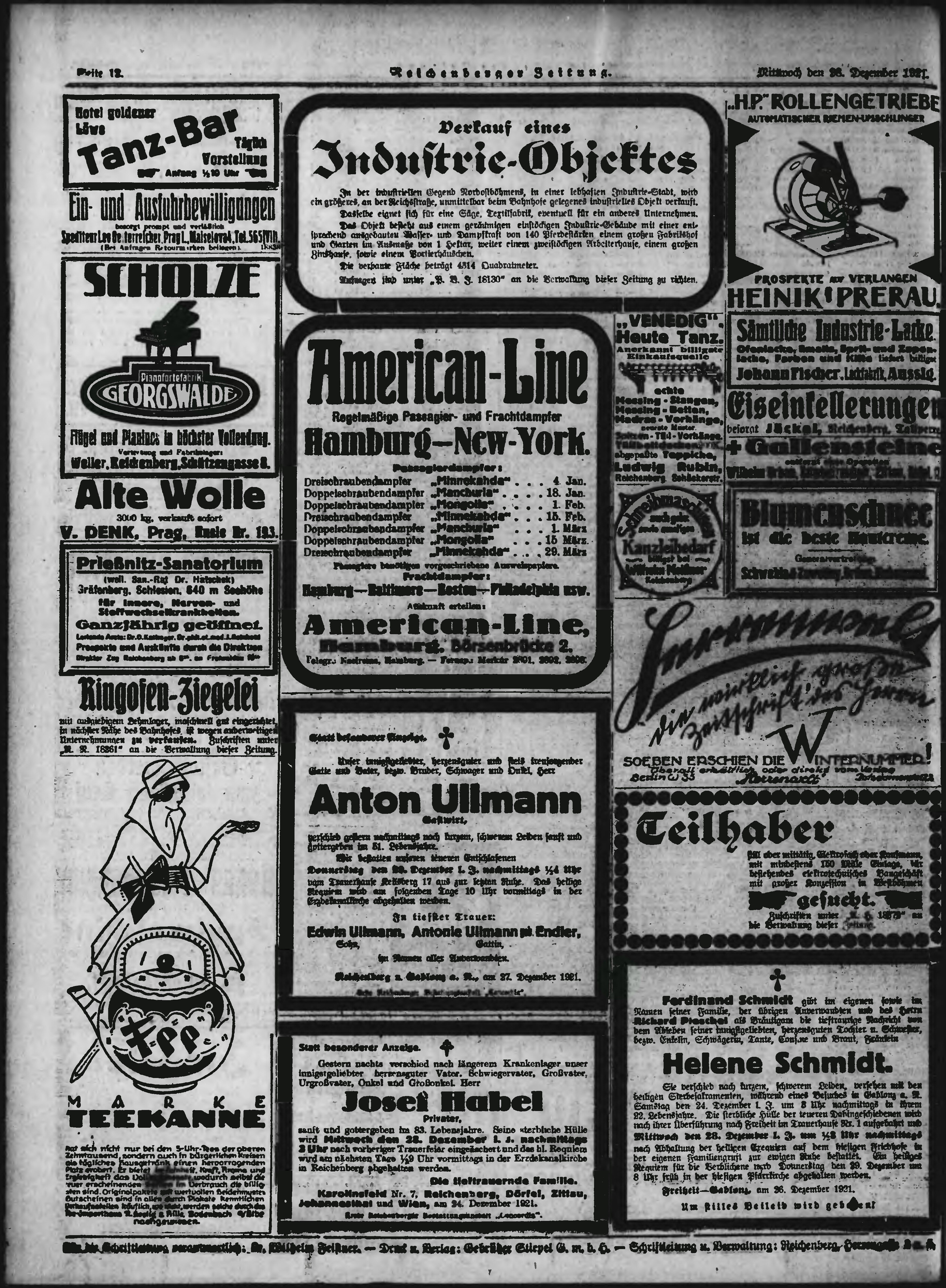 * Datum vydání výtisku: 28.12.1921 Číslo výtisku: 305 Poznámky k výtisku: ranní vydání;