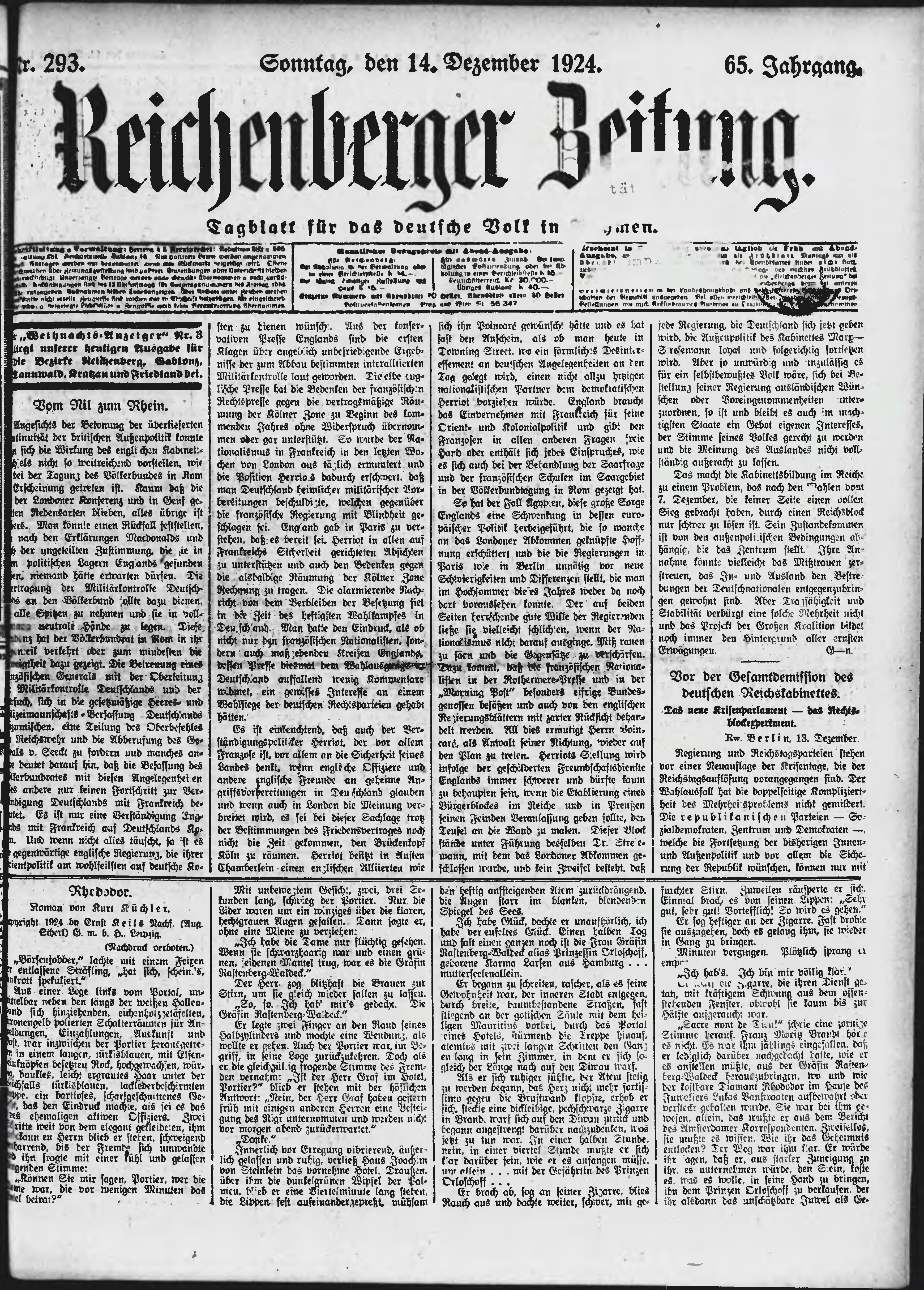 * Datum vydání výtisku: 14.12.1924 Číslo výtisku: 293 Poznámky k výtisku: ranní vydání;