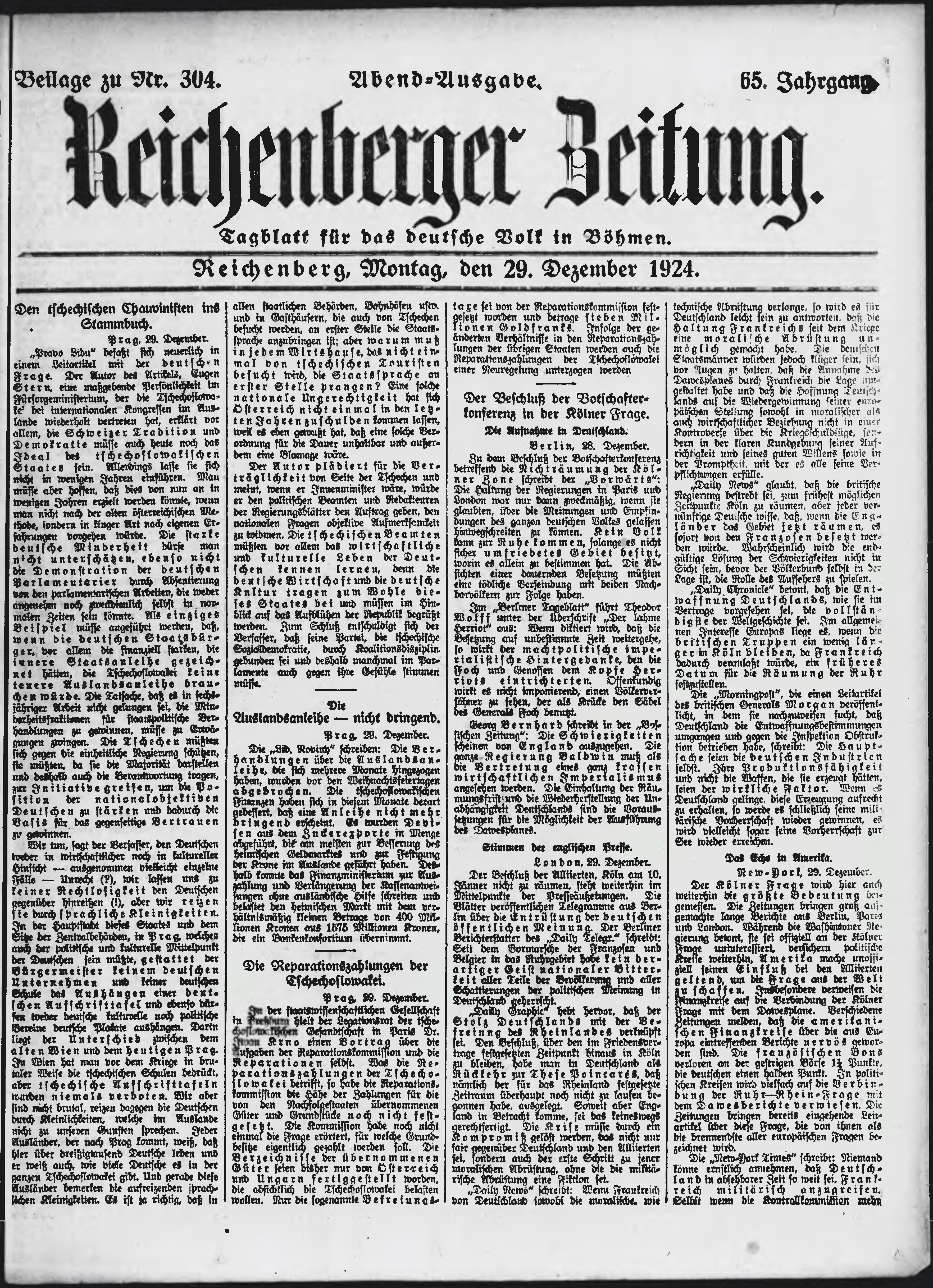 * Datum vydání výtisku: 29.12.1924 Číslo výtisku: 304 Typ výtisku: příloha Poznámky k výtisku: večerní vydání;