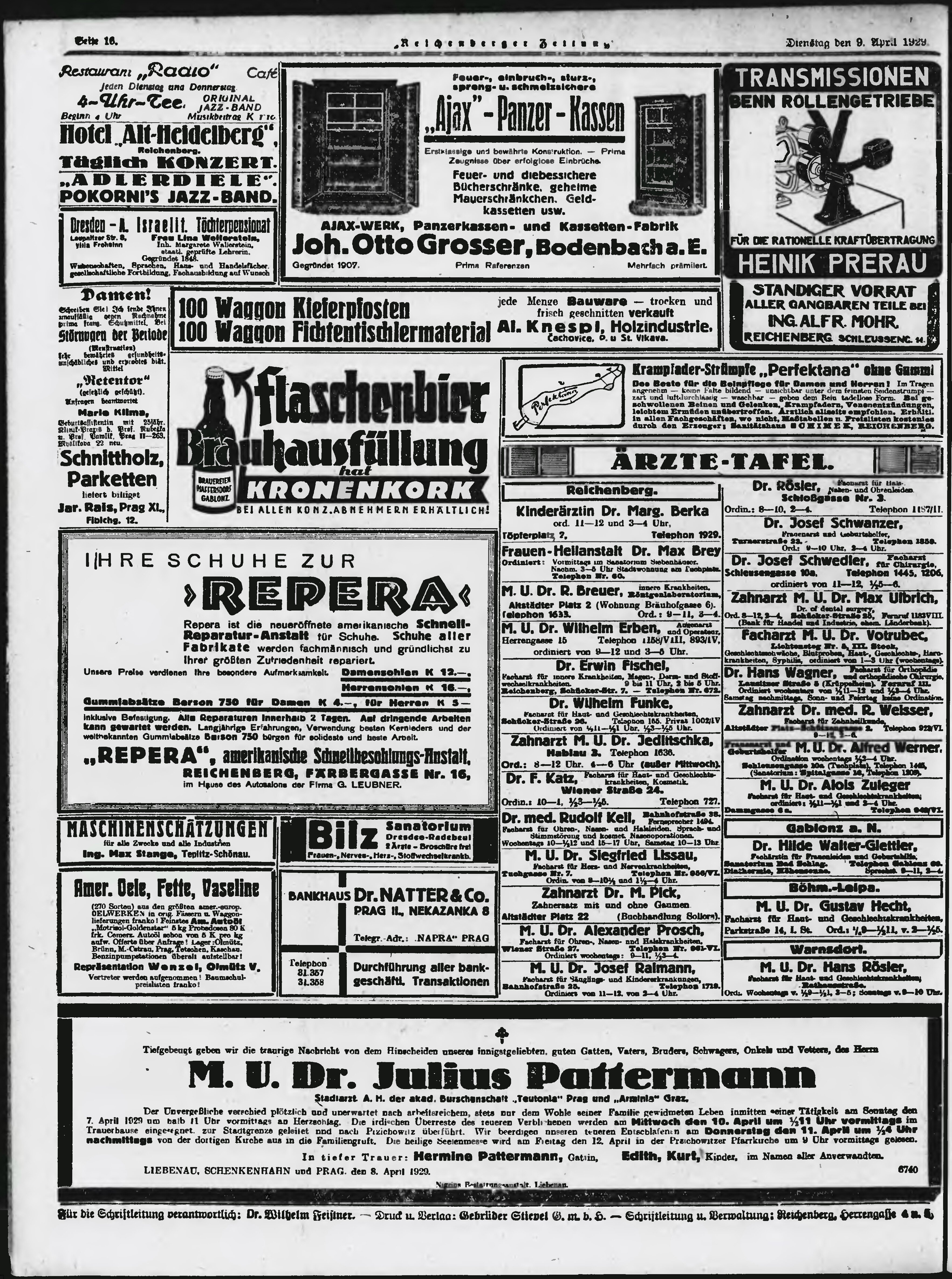 * Datum vydání výtisku: 9.4.1929 Číslo výtisku: 84 Poznámky k výtisku: ranní vydání;