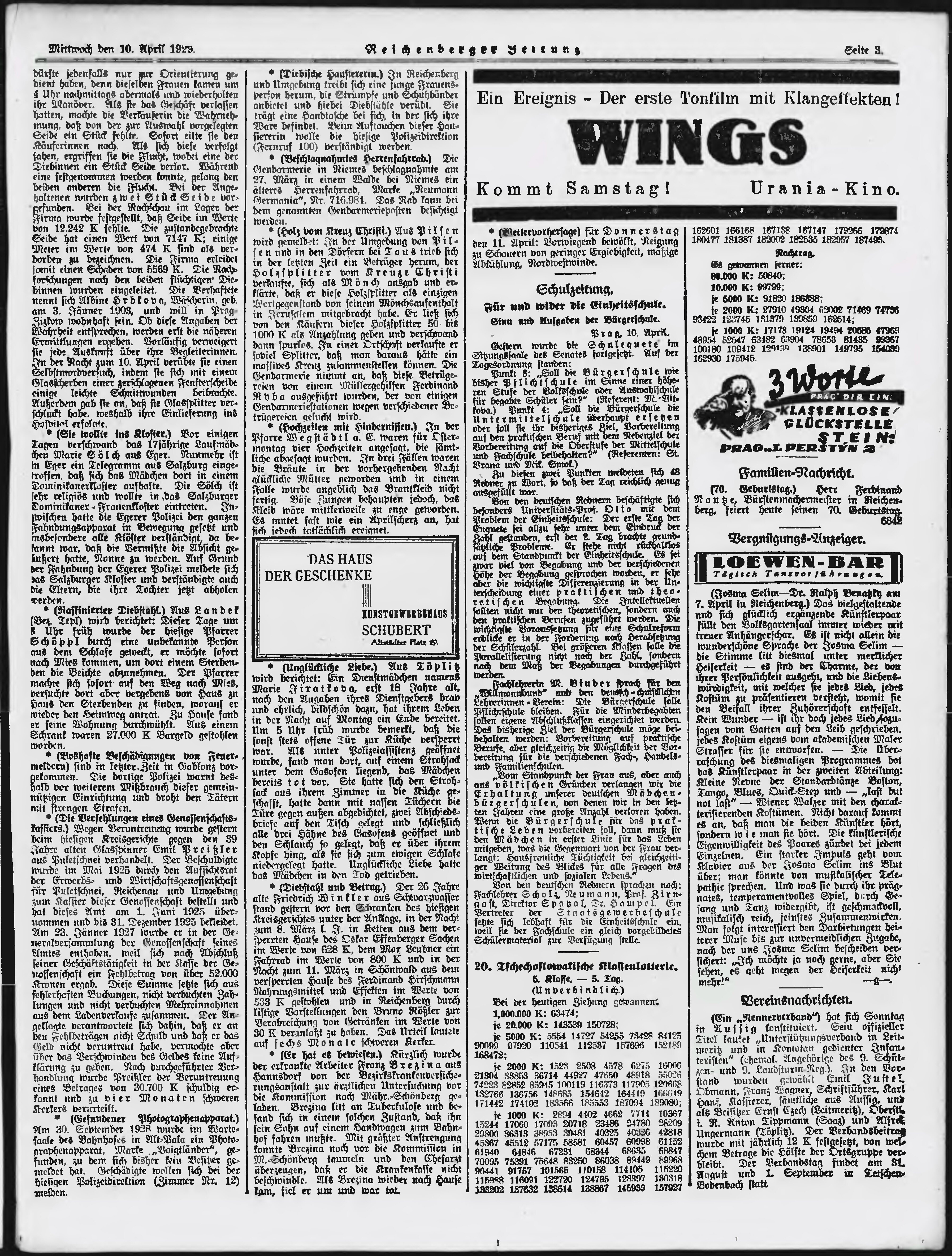 * Datum vydání výtisku: 10.4.1929 Číslo výtisku: 86 Typ výtisku: příloha Poznámky k výtisku: večerní vydání;