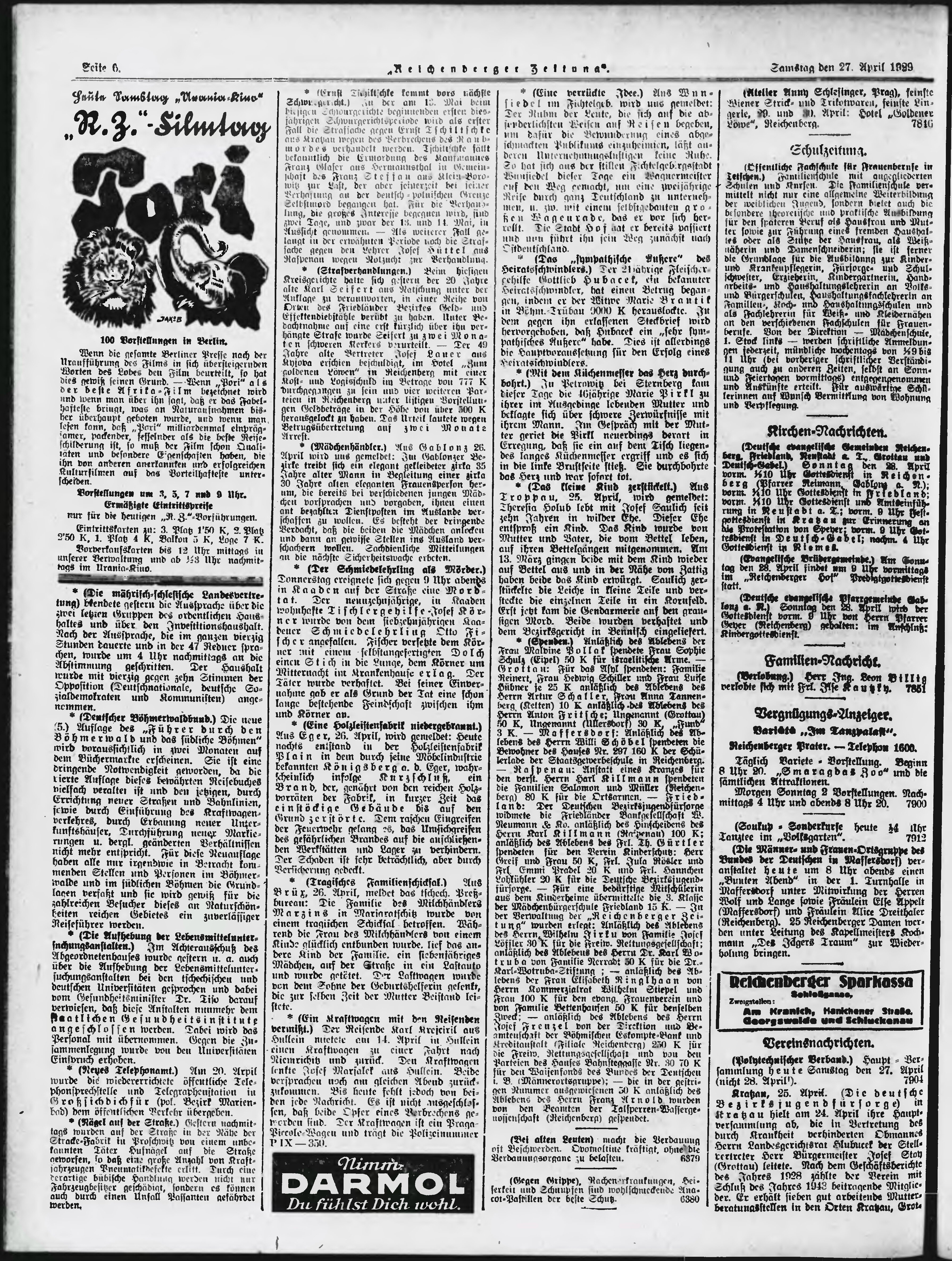 * Datum vydání výtisku: 27.4.1929 Číslo výtisku: 100 Poznámky k výtisku: ranní vydání;