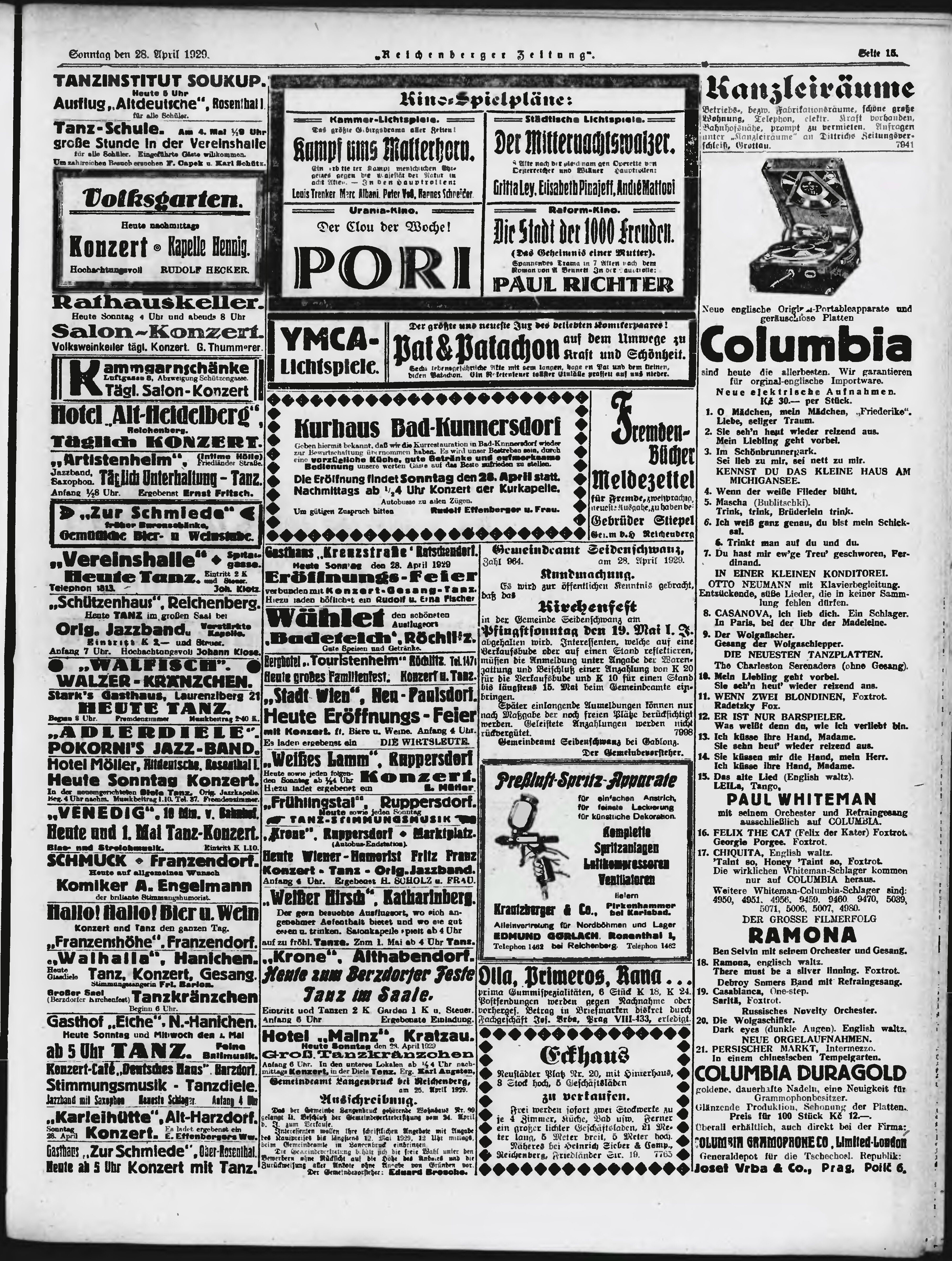 * Datum vydání výtisku: 28.4.1929 Číslo výtisku: 101 Poznámky k výtisku: ranní vydání;