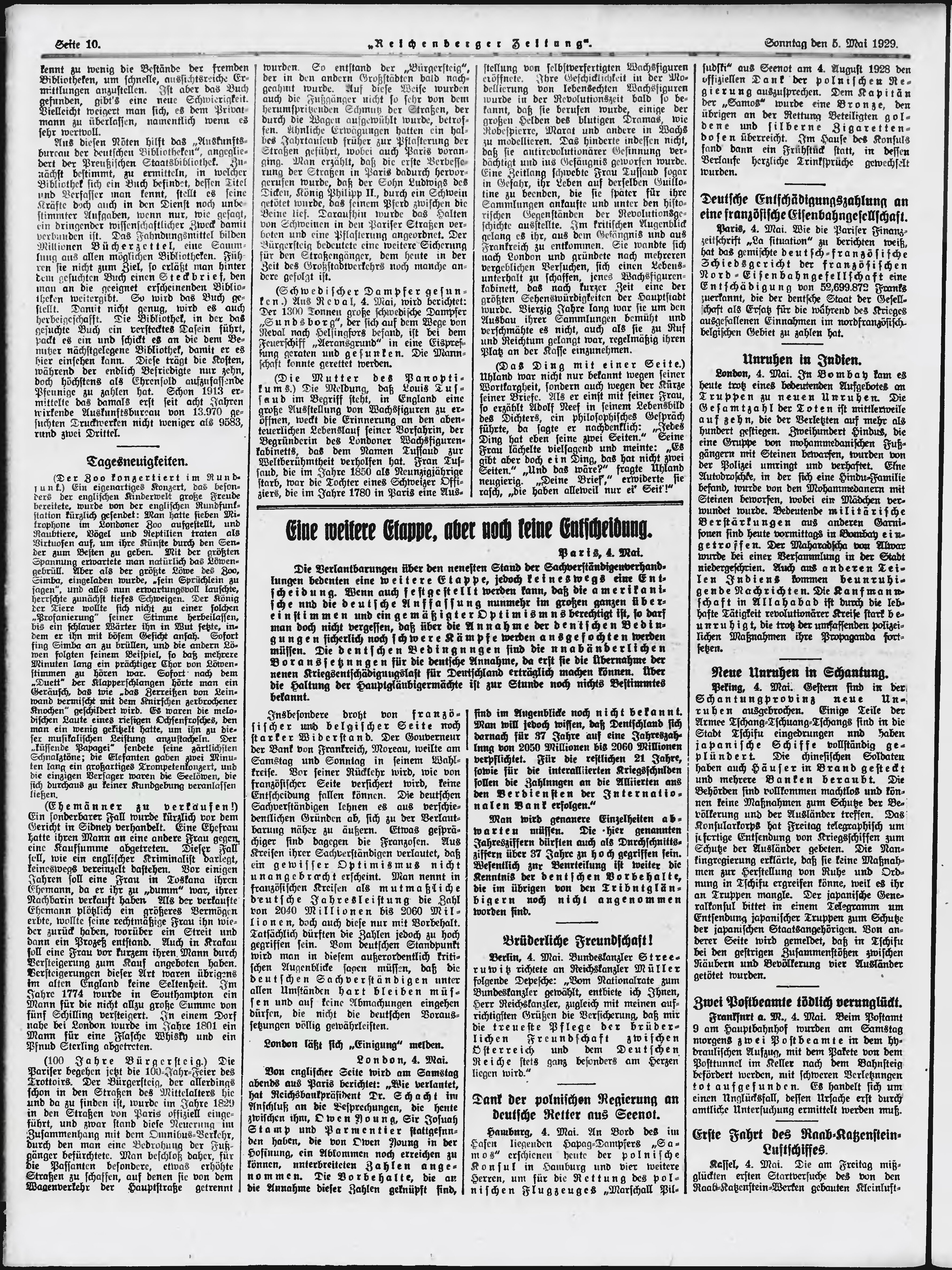 * Datum vydání výtisku: 5.5.1929 Číslo výtisku: 106 Poznámky k výtisku: ranní vydání;