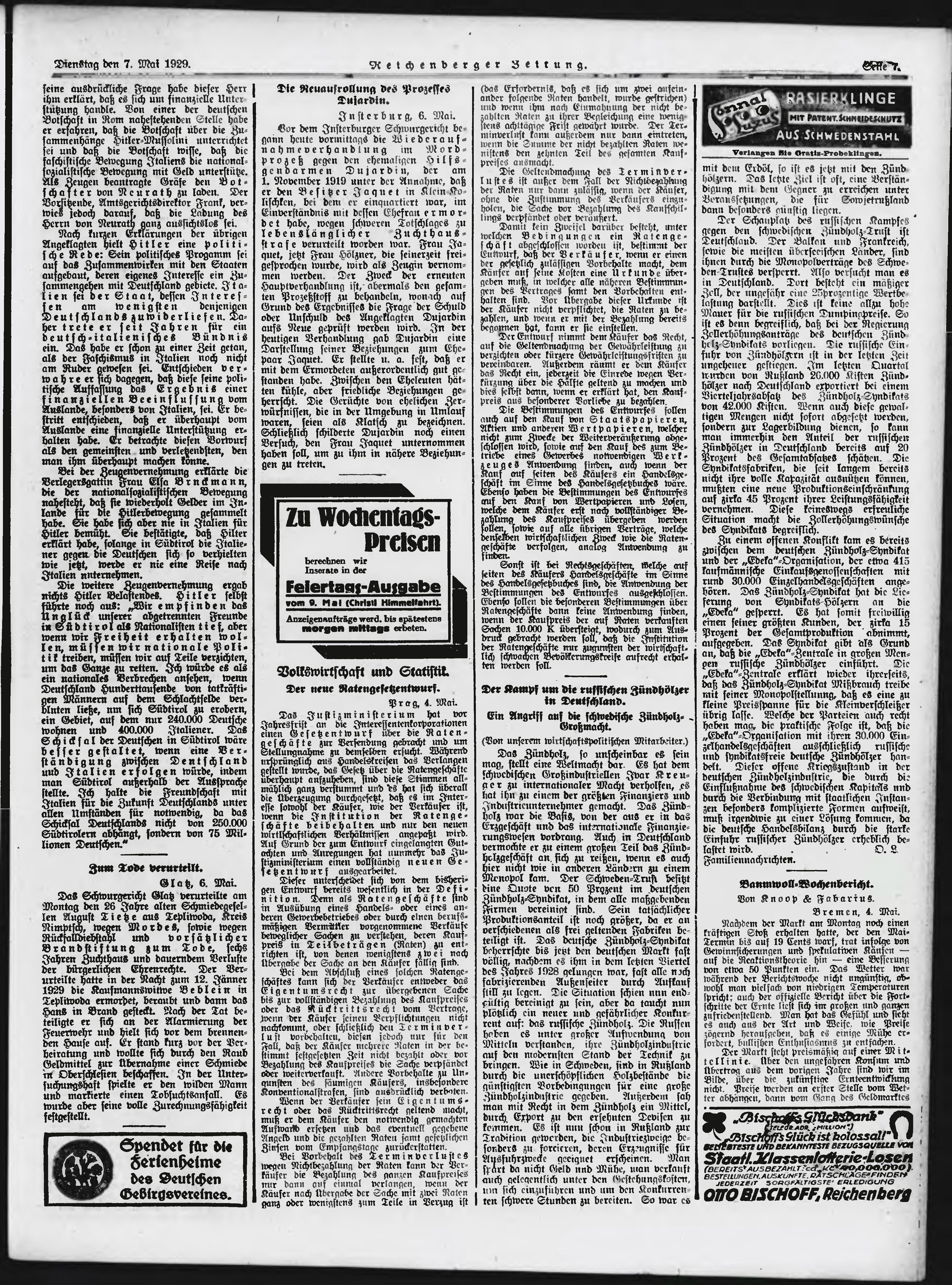 * Datum vydání výtisku: 7.5.1929 Číslo výtisku: 107 Poznámky k výtisku: ranní vydání;