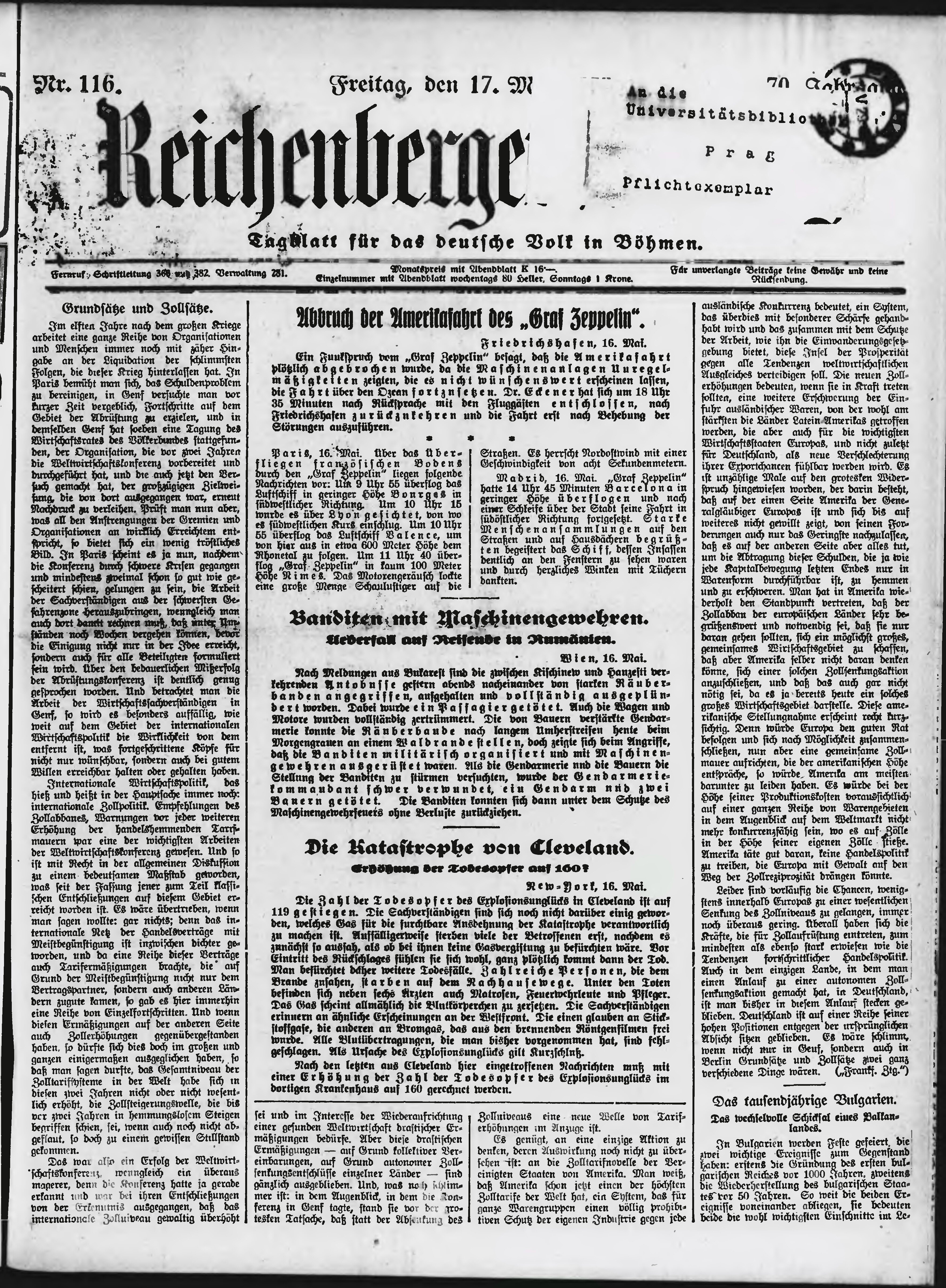 * Datum vydání výtisku: 17.5.1929 Číslo výtisku: 116 Poznámky k výtisku: ranní vydání;