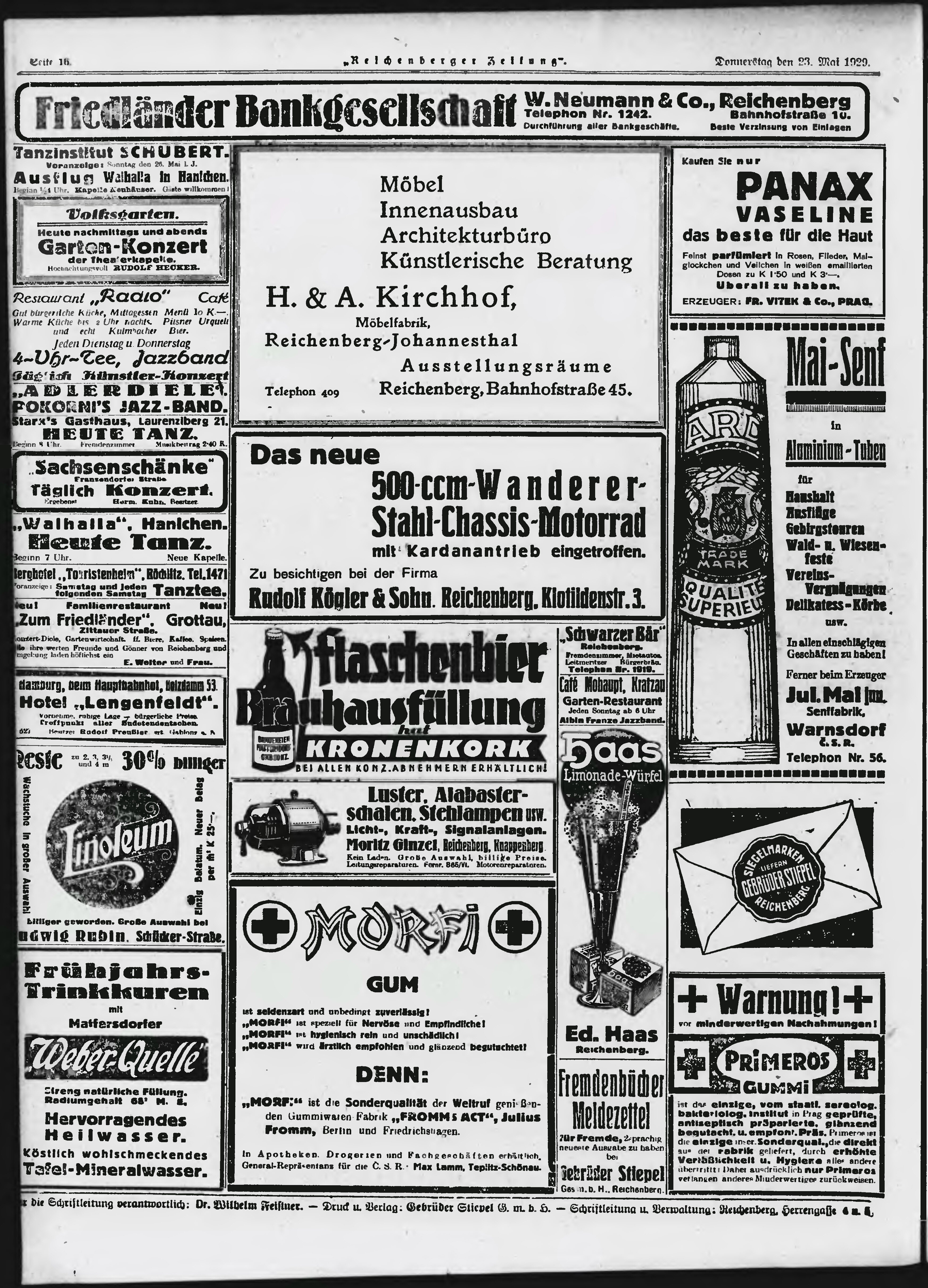 * Datum vydání výtisku: 23.5.1929 Číslo výtisku: 120 Poznámky k výtisku: ranní vydání;