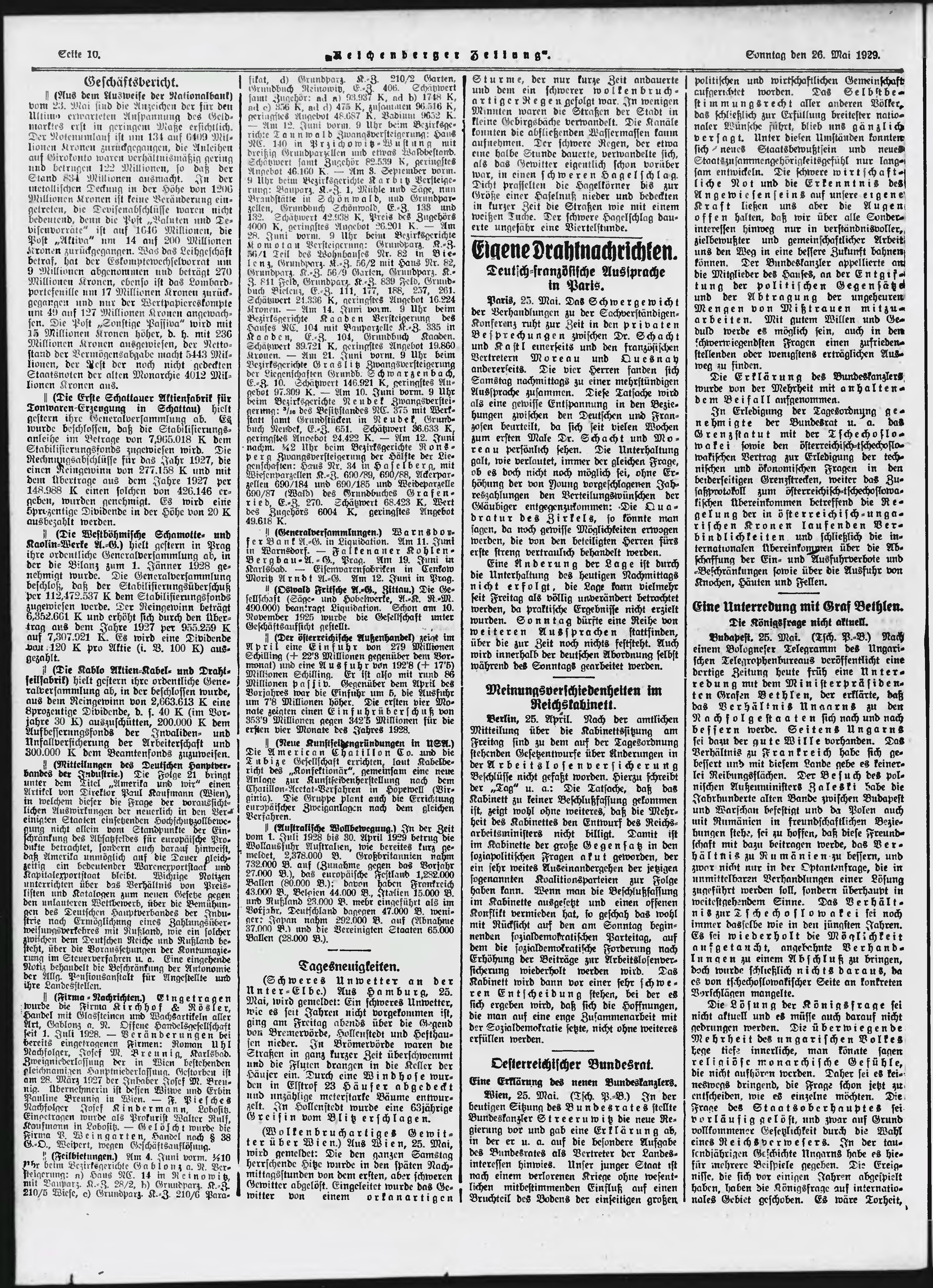 * Datum vydání výtisku: 26.5.1929 Číslo výtisku: 123 Poznámky k výtisku: ranní vydání;