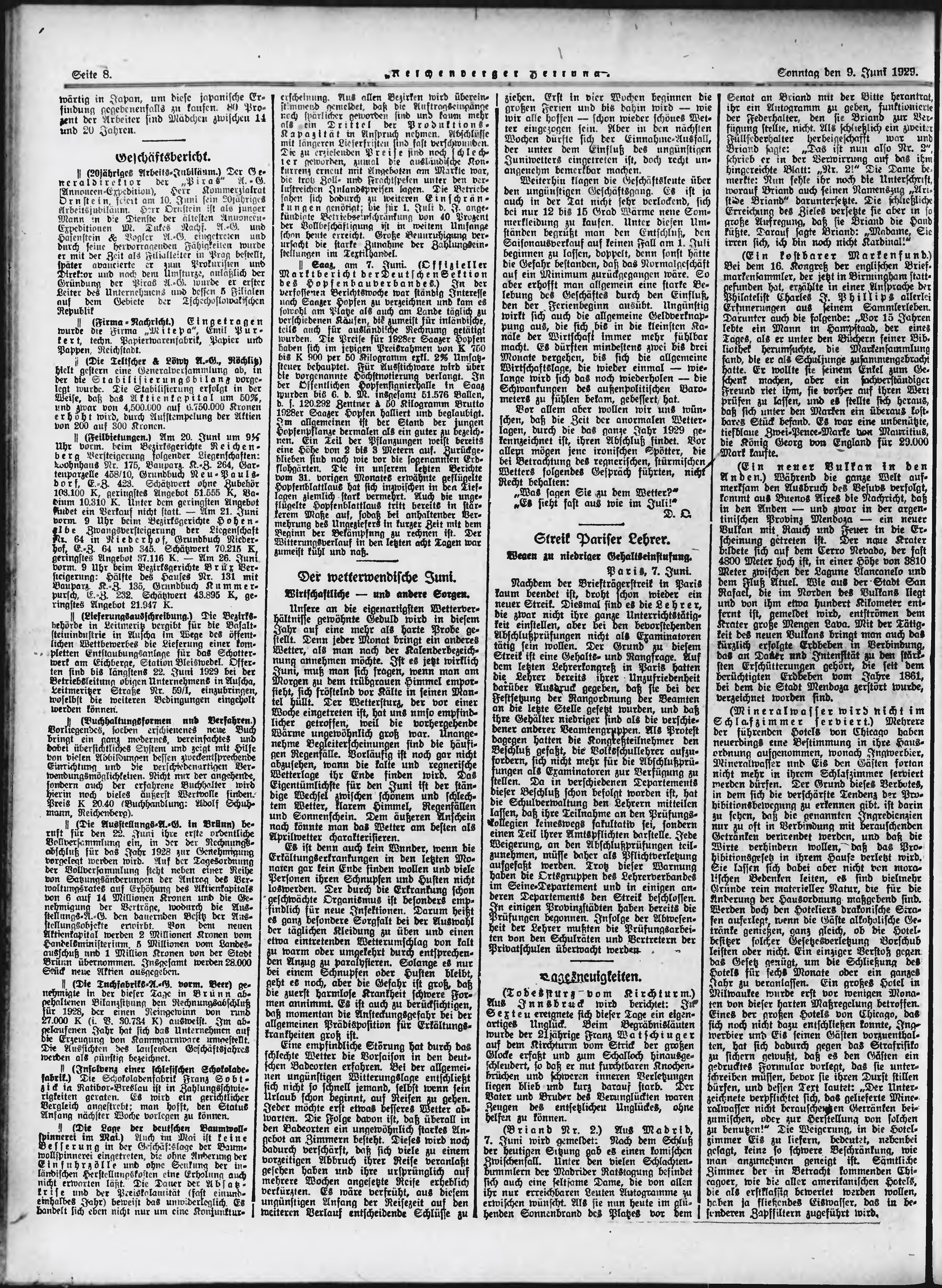 * Datum vydání výtisku: 9.6.1929 Číslo výtisku: 135 Poznámky k výtisku: ranní vydání;